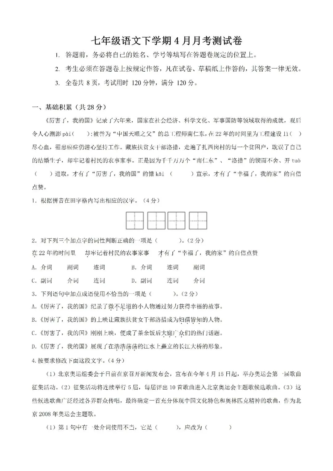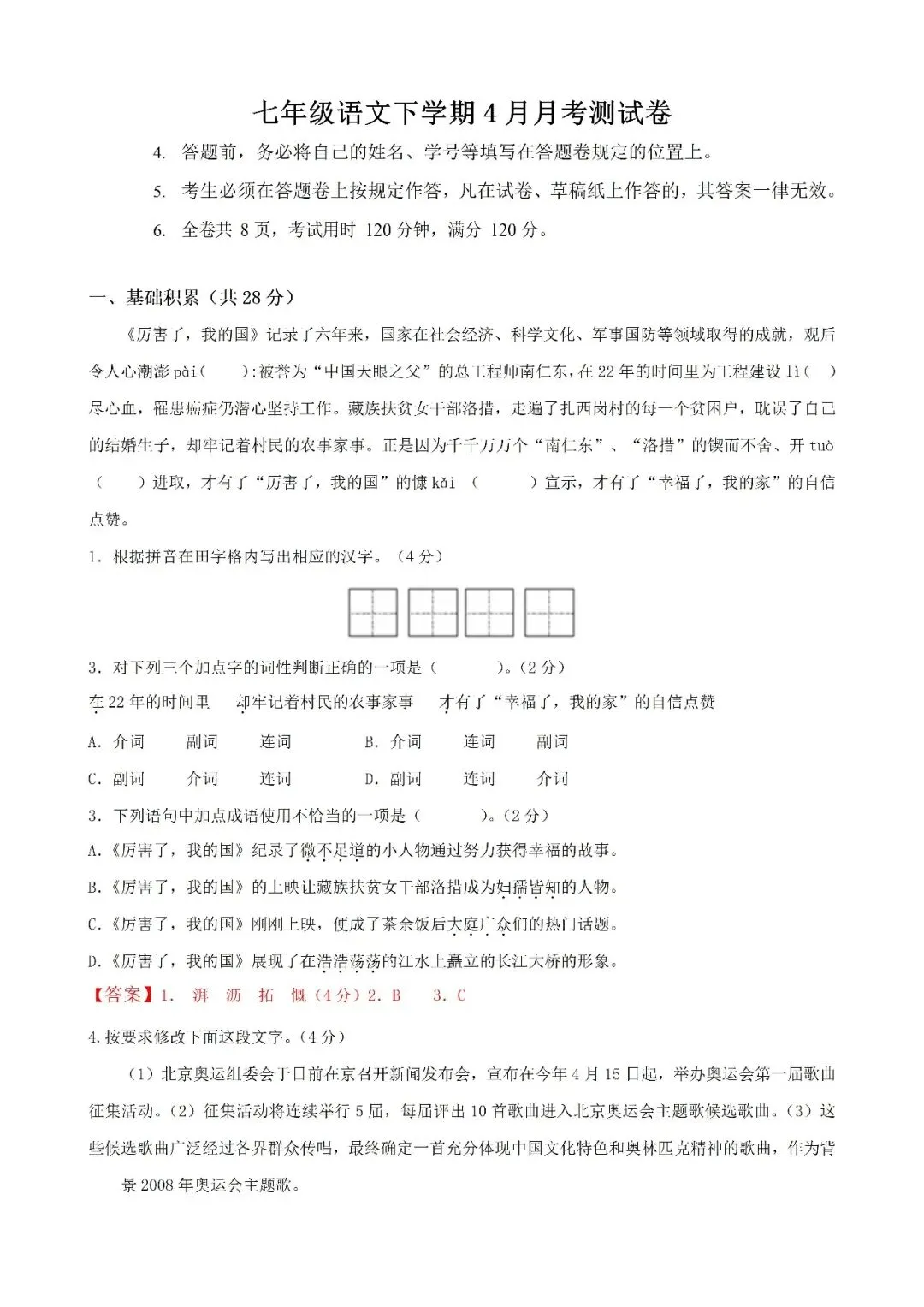 【A3试卷纸一键打印】2026学年春学期期中考试七年级历史学科(一)(二)(三)4.20印