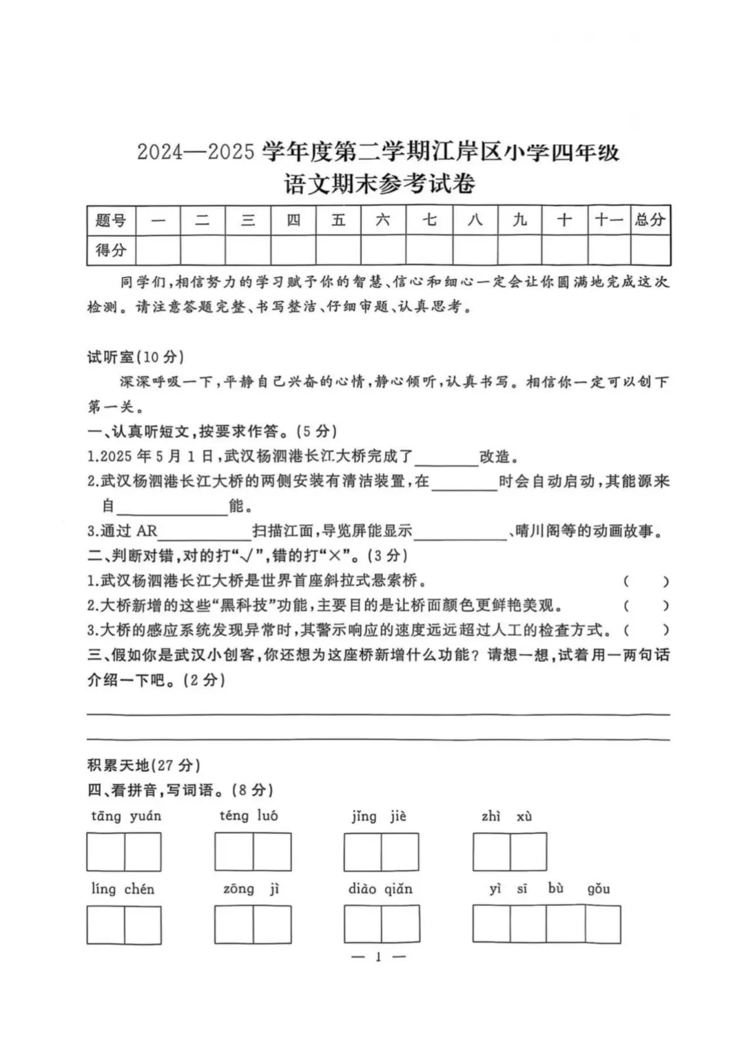点击W的学习助手,首页—武汉专题—四年级,领取资料