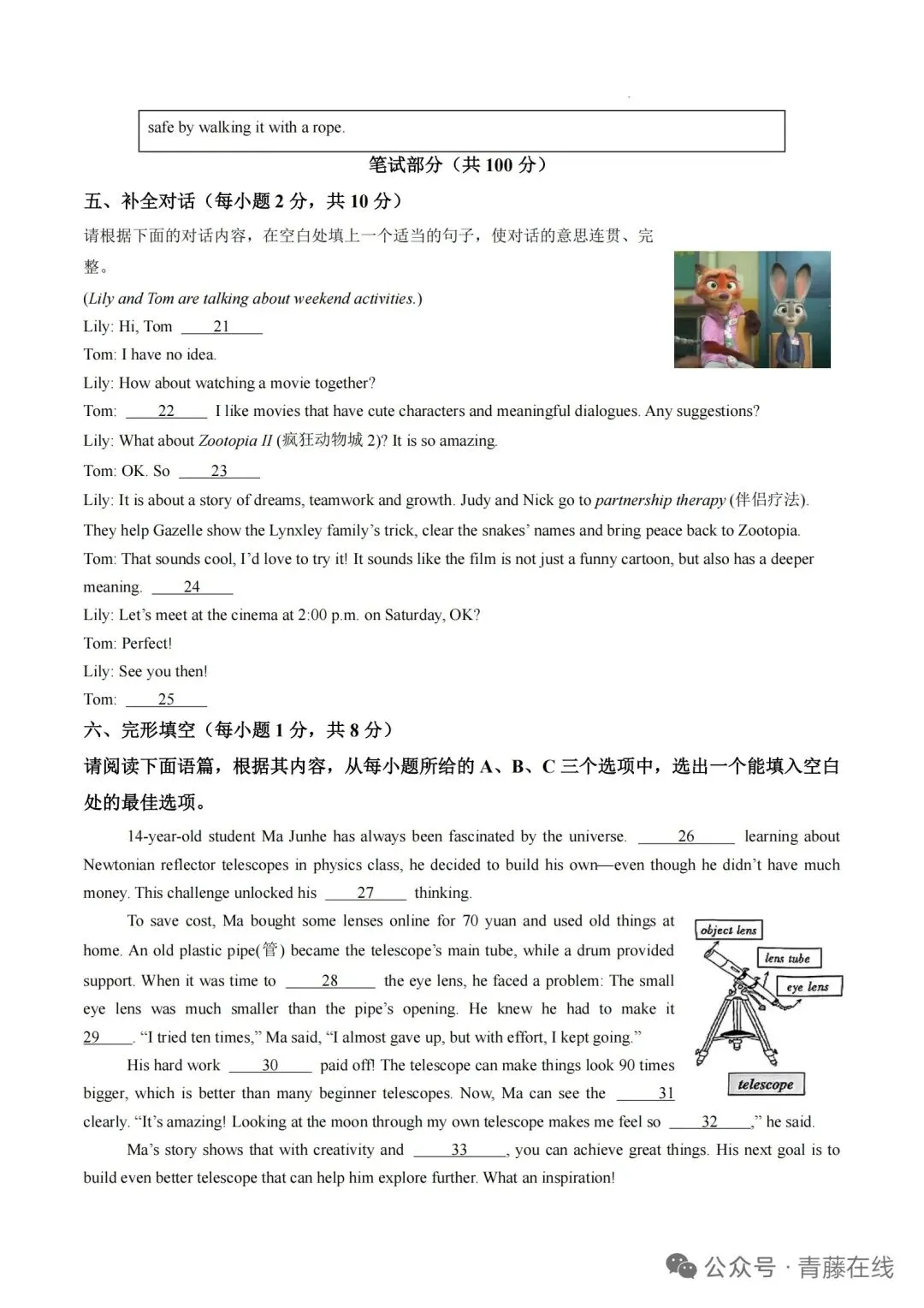 【九下】2026年道里区一模英语试卷及答案