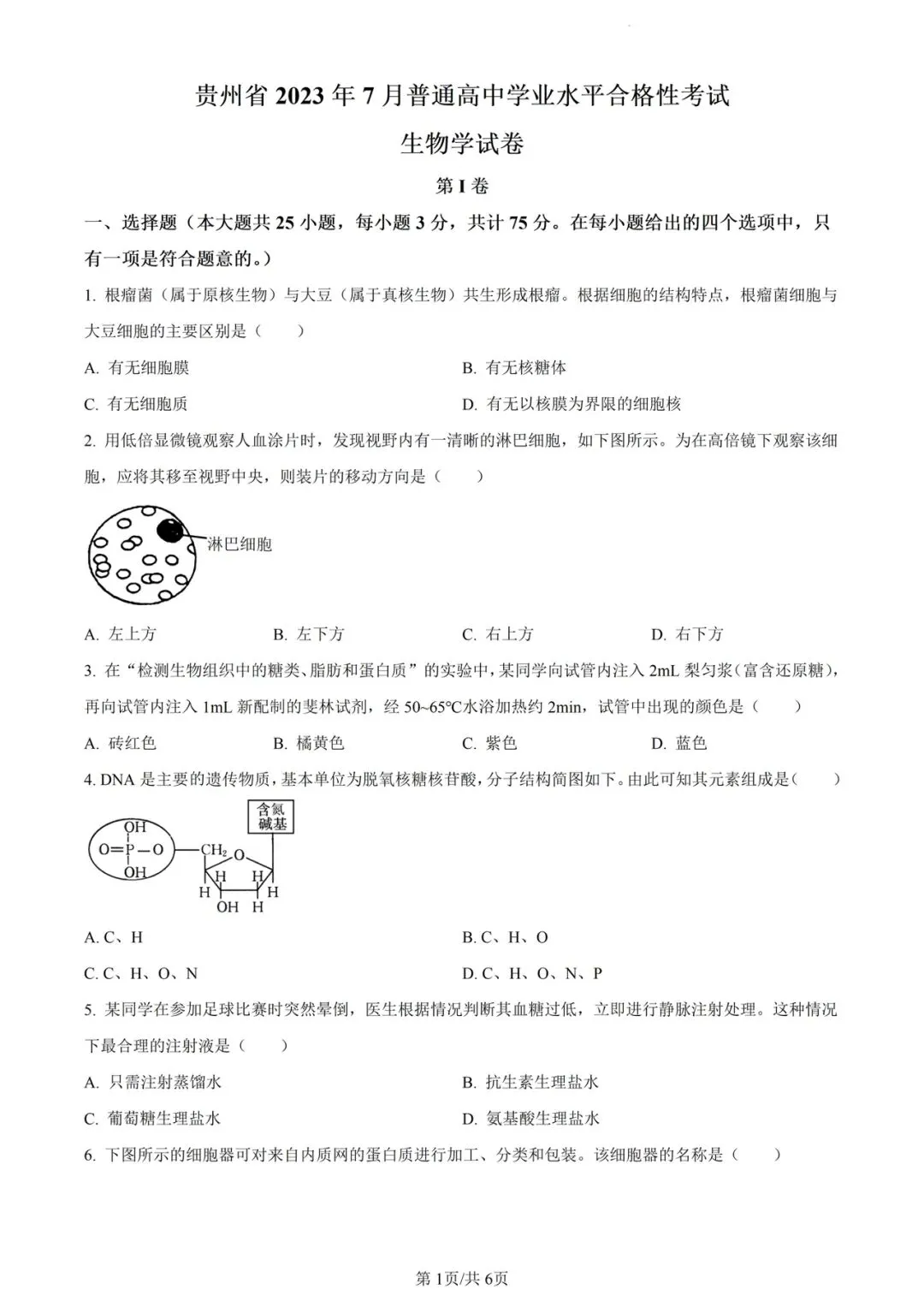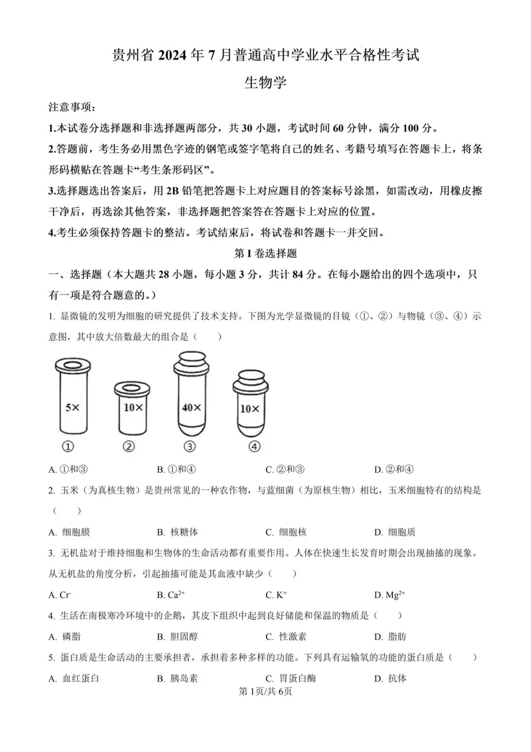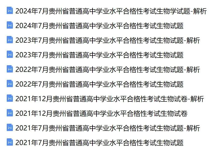>近5年贵州省合格考(学考)生物学试卷及答案解析