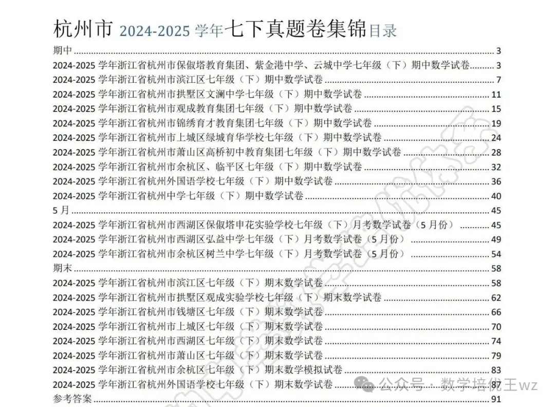 本次分享的真题卷集锦,专为数学 100 分以上学生准备,想冲刺高分的孩子一定不能错过。资料包含去年期中、月考、期末真题卷、参考答案,一次领取,用到期末,不用再到处找高质量卷子。
