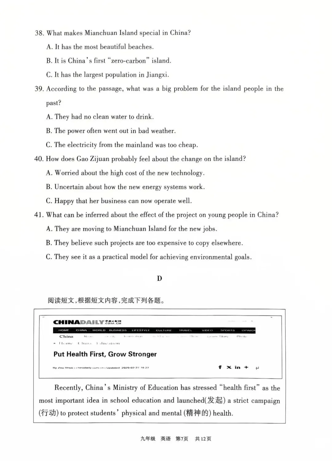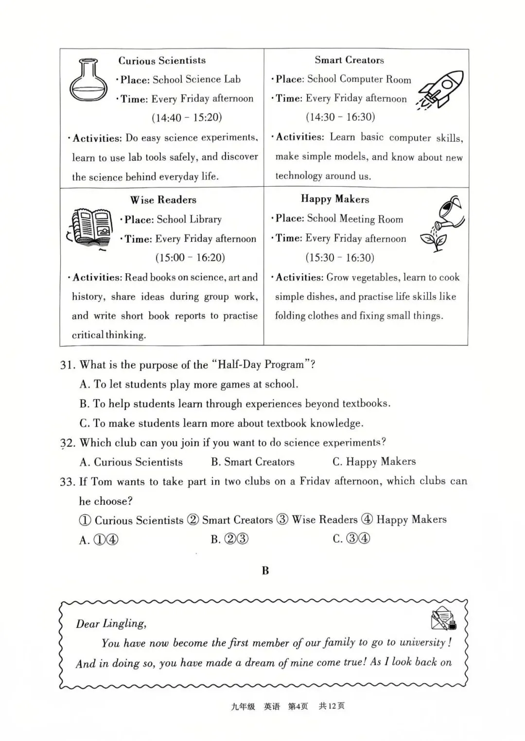 【九下】2026年道里区一模英语试卷及答案
