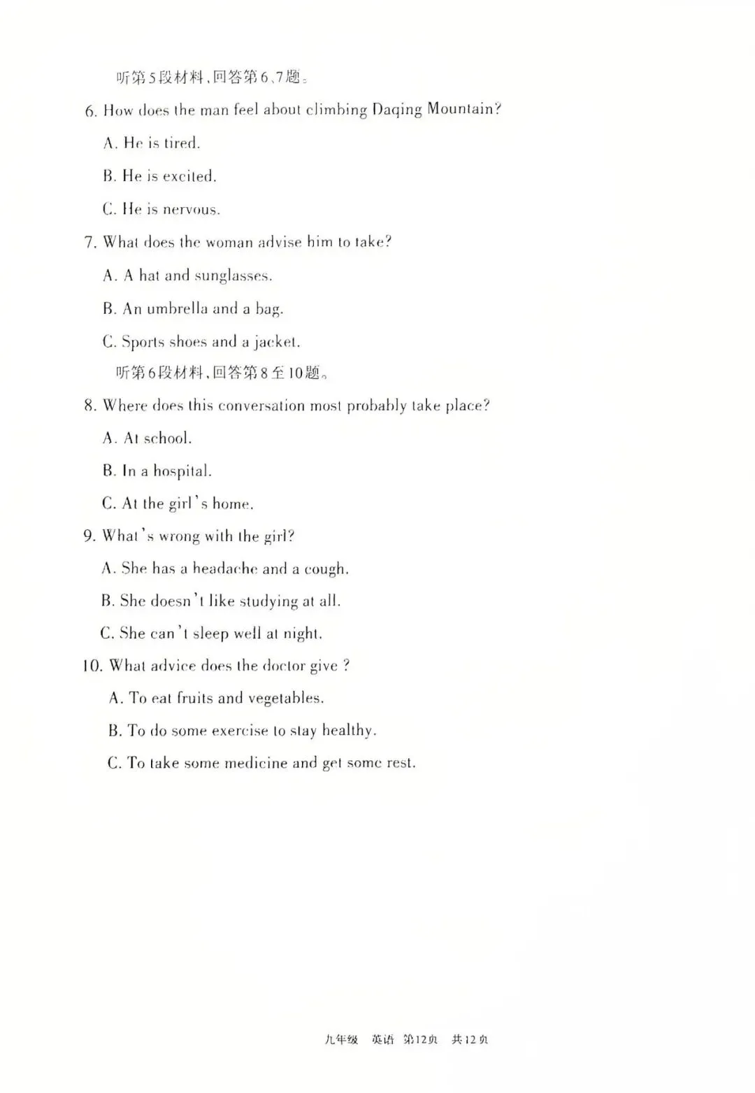 【适应性英语试卷+听力】2026年初中学业水平模拟考试适应性测试英语(一)+听力音频