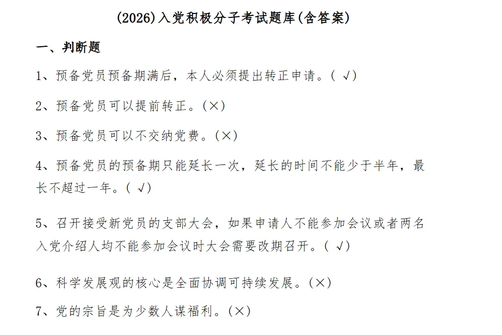 2026年最新入党积极分子考试题库分享