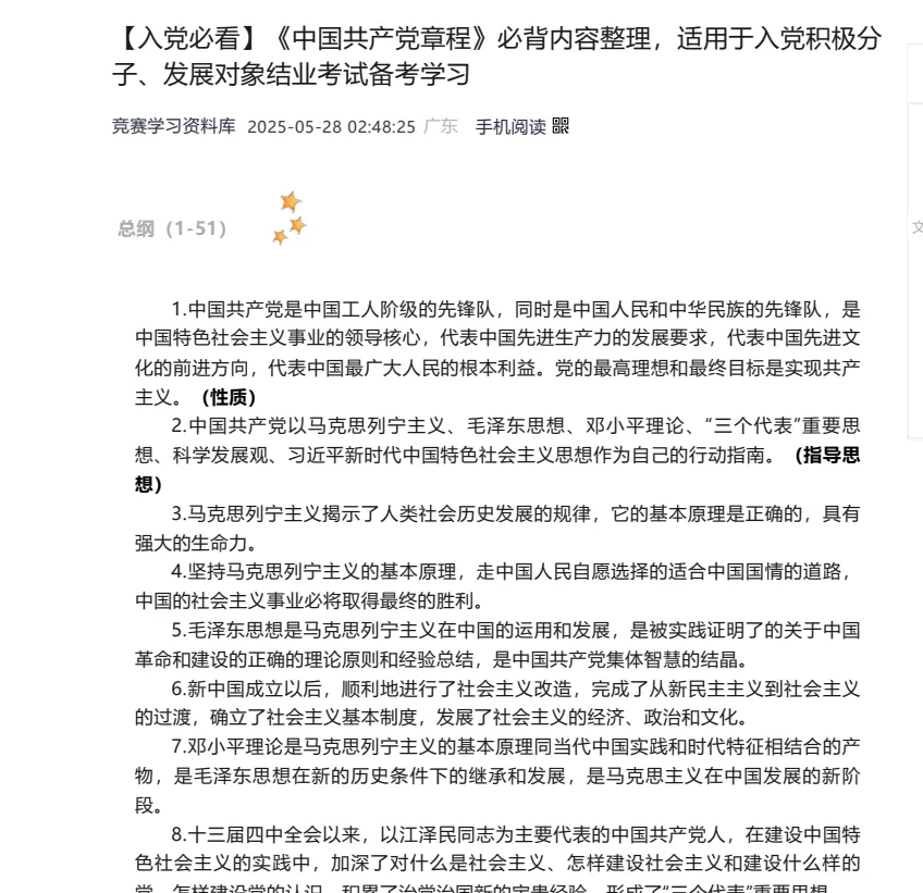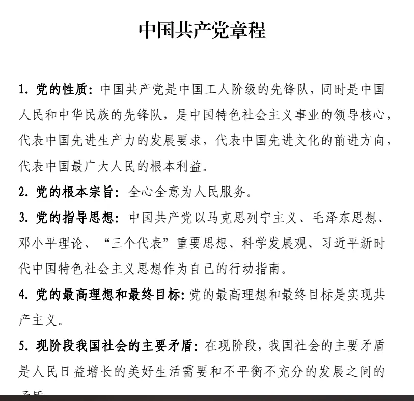 :党章基础知识、党史常识、党的指导思想、二十大核心内容、党员义务权利、入党基本流程、时事政治。