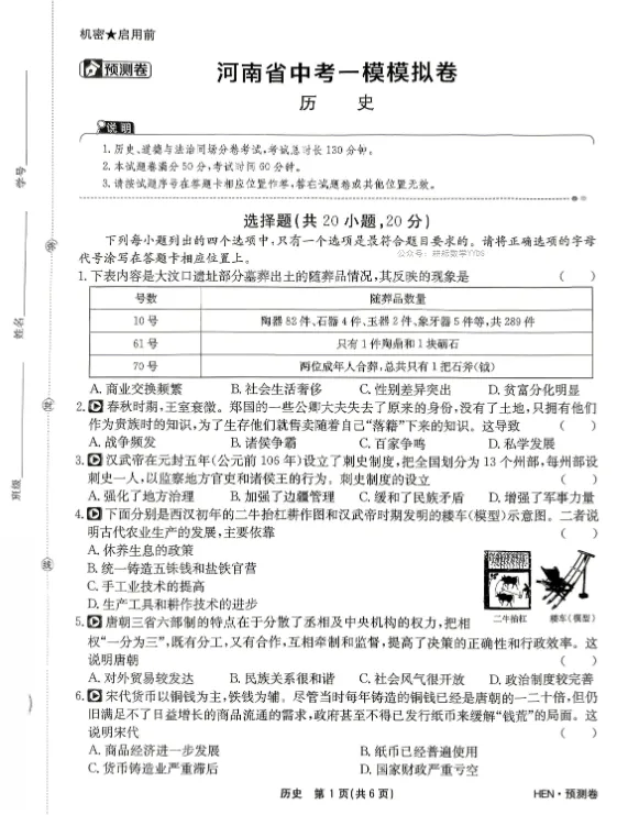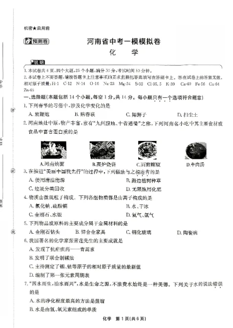 2026河南中考一模模拟试卷预测卷,七科齐全。部分内容预览如下,完整版获取方式见文末。