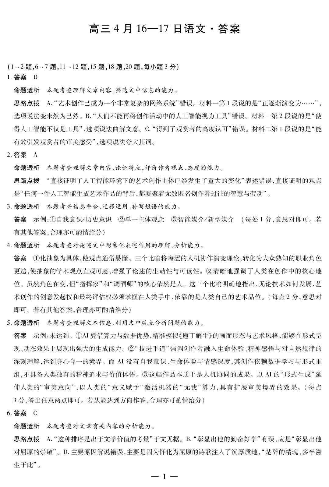 天一大联考皖豫名校联盟2025高三4月检测试卷及答案!附:分数线