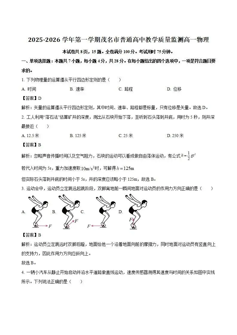 当前位置:首页>考研真题>《高中试卷》广东省茂名市2025-2026学年高一上学期期末教学质量监测物理(含答案)