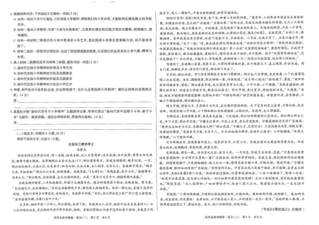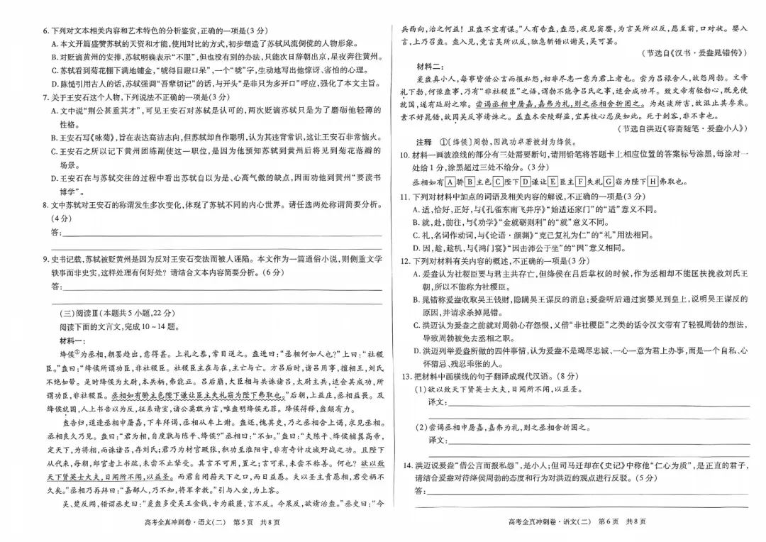 >【三份好题】高中语文试题快题(试卷+答题卡+讲评课件+答案解析)
