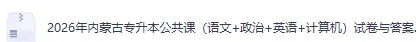 目前,2026内蒙古专升本考试公共课(语文+政治+英语+计算机)已经结束,真题答案上传更新中,可以来准备对答案了!