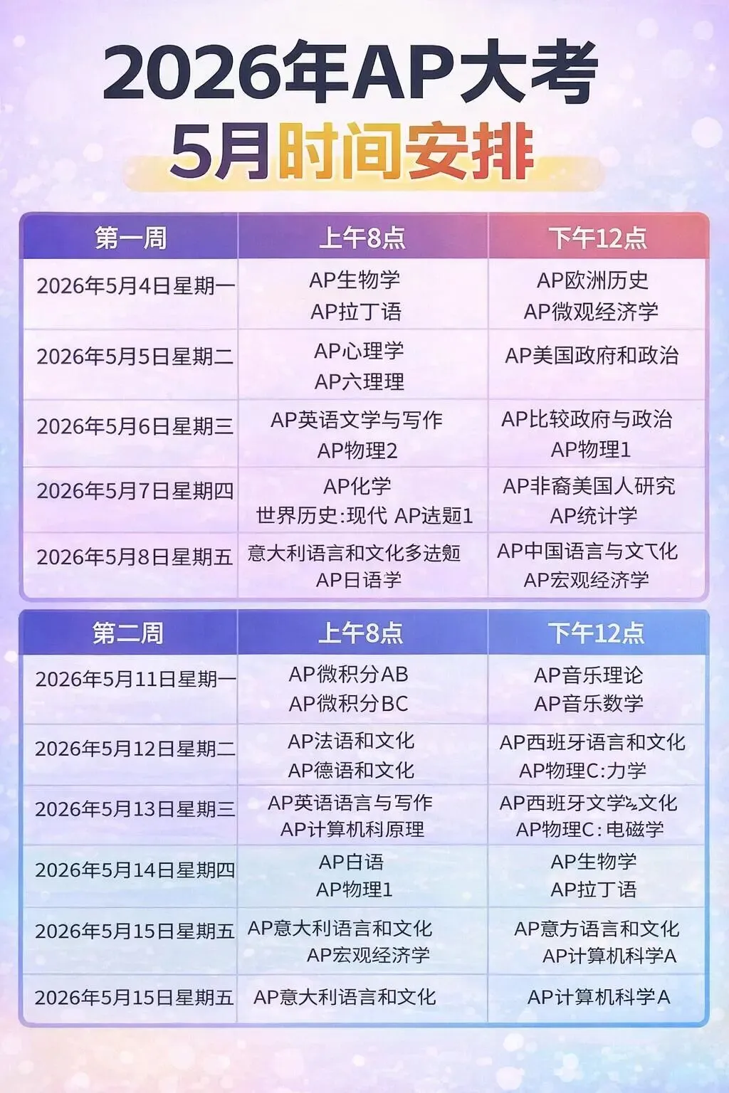 🔥26年AP大考时间安排!