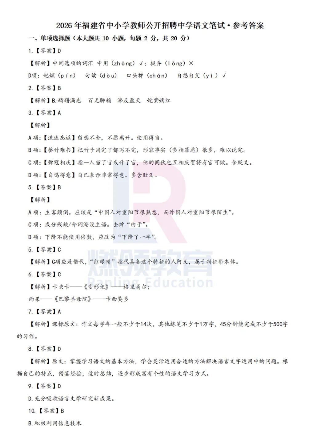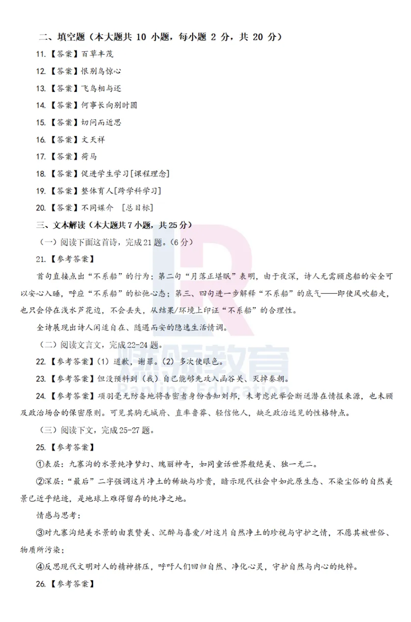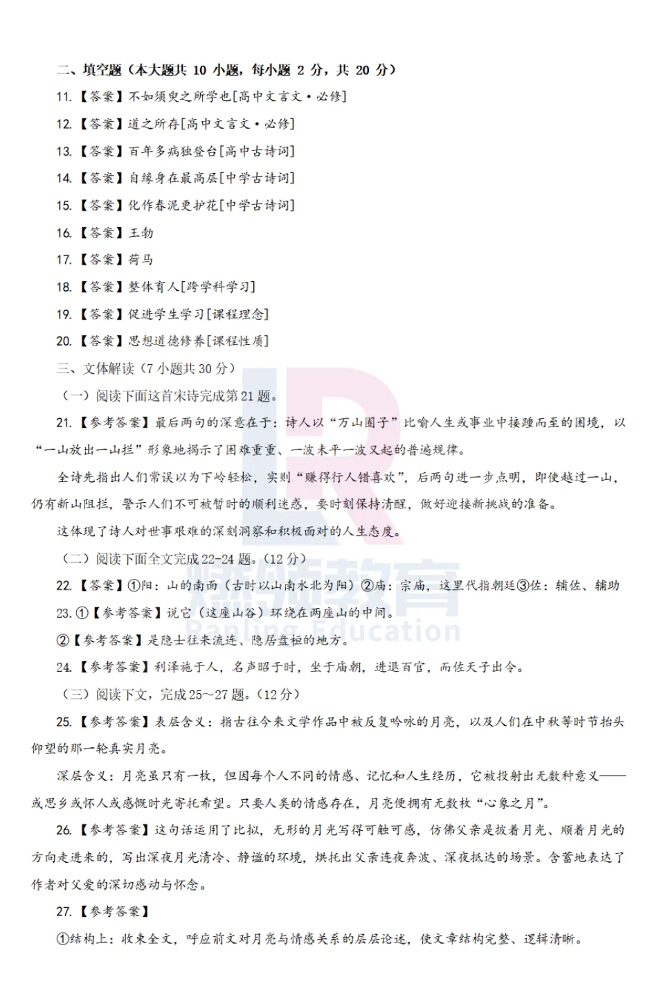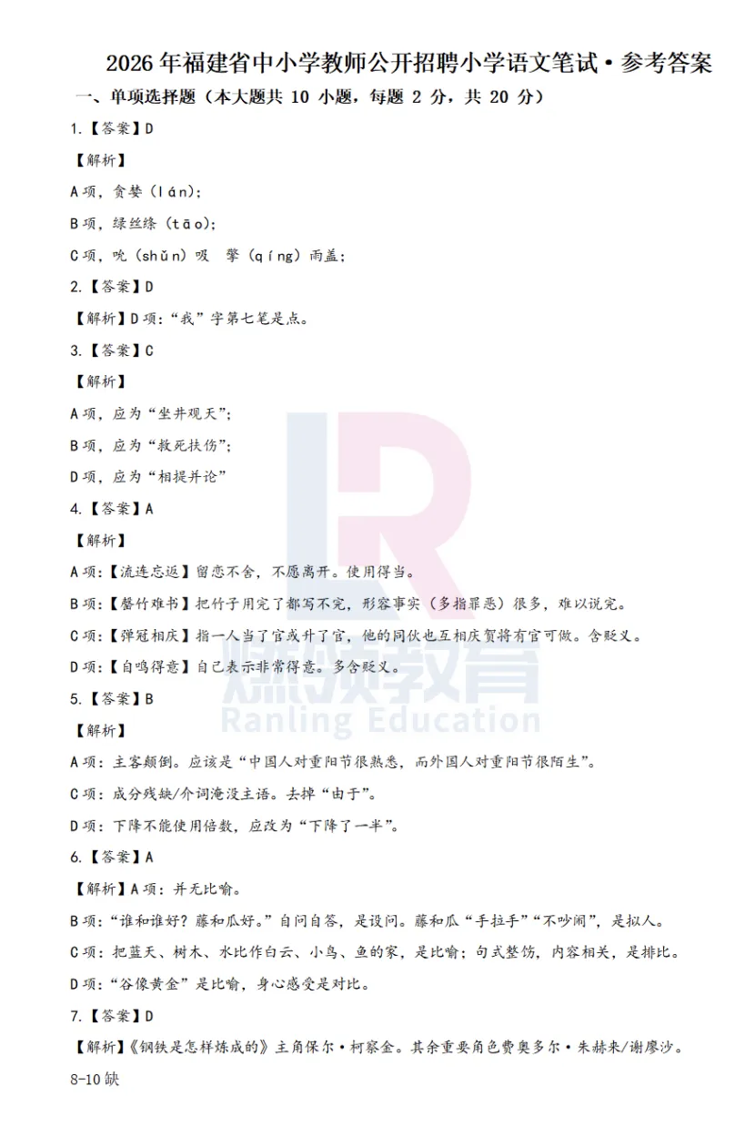 一起来对答案吧!