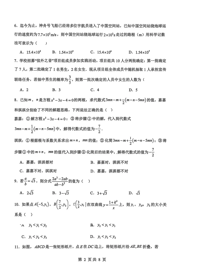 【中考模拟】2026年3月石家庄市新华区一模数学含答案(文末附下载链接)