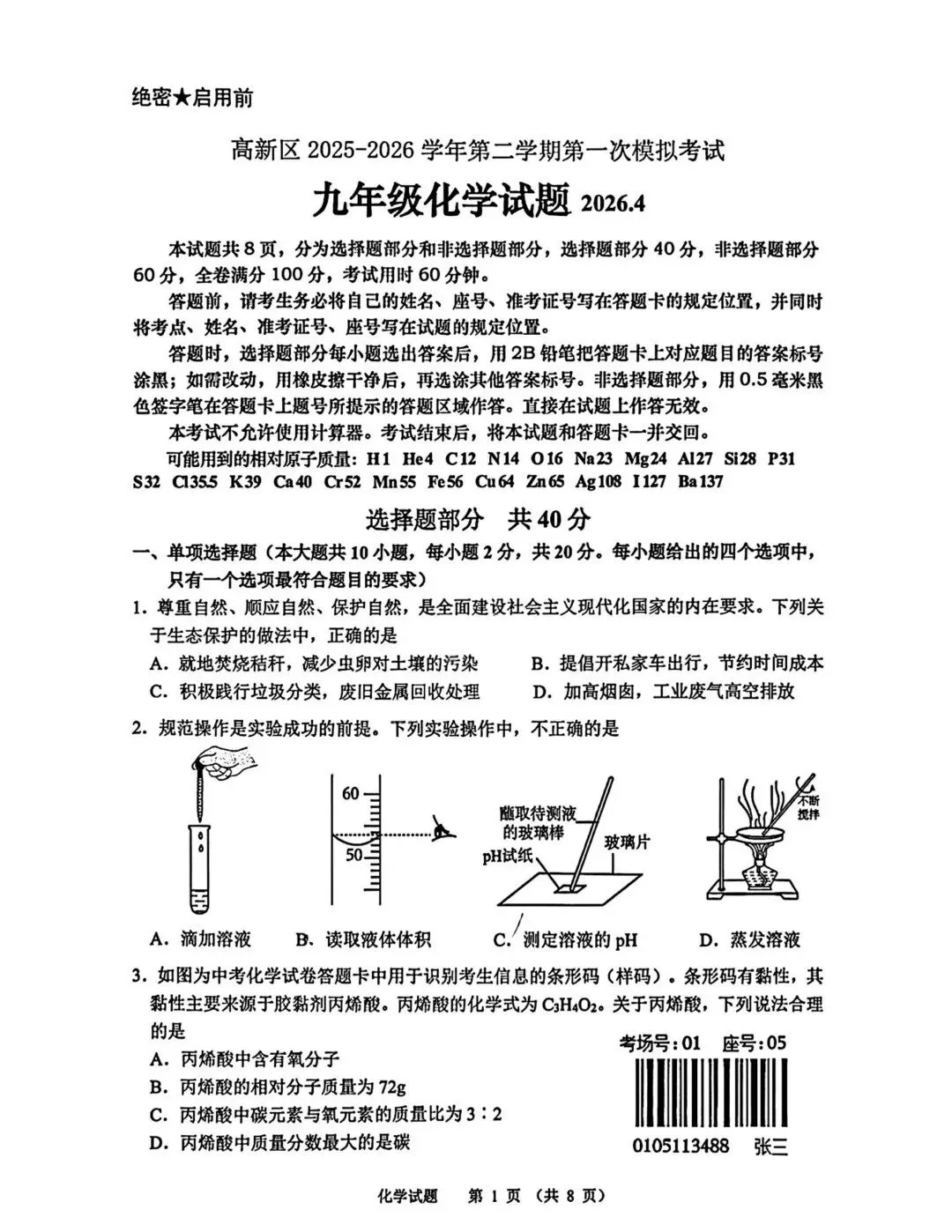 【新乡模拟】2026年新乡市中考一模试卷及答案(7科含听力)