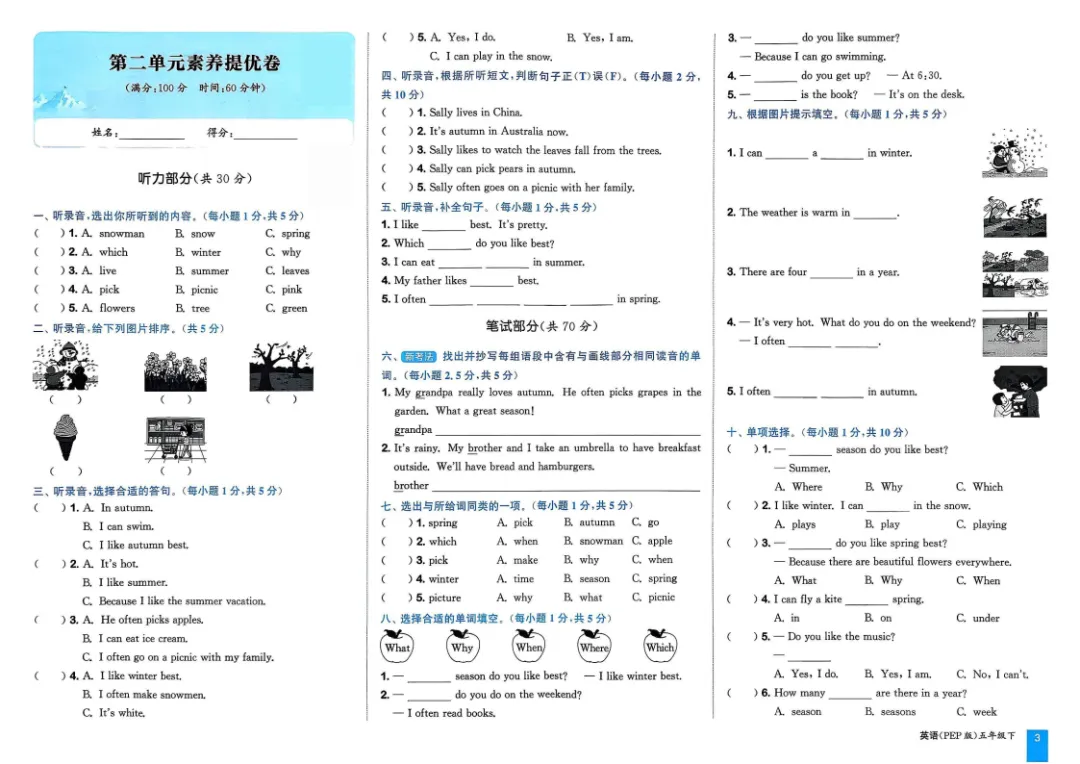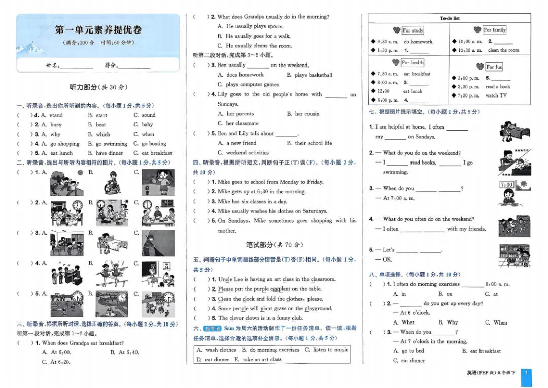 新版五年级下册英语试卷,拔尖测试卷,含1-6单元素养提优卷+期中素养提优卷+期末素养提优卷+期末专项复习卷,附答案+听力,文末可下载