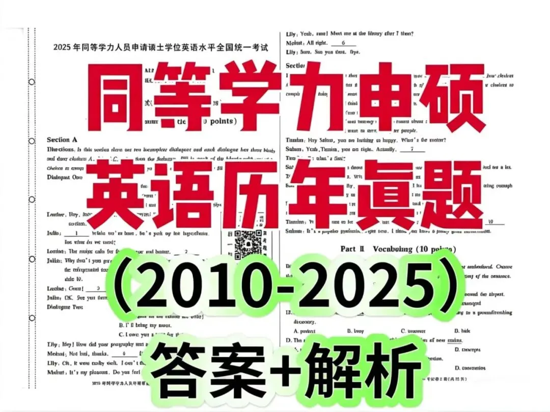 同等学力申硕英语历年真题2010-2025(答案+解析)PDF电子版,高清可打印!