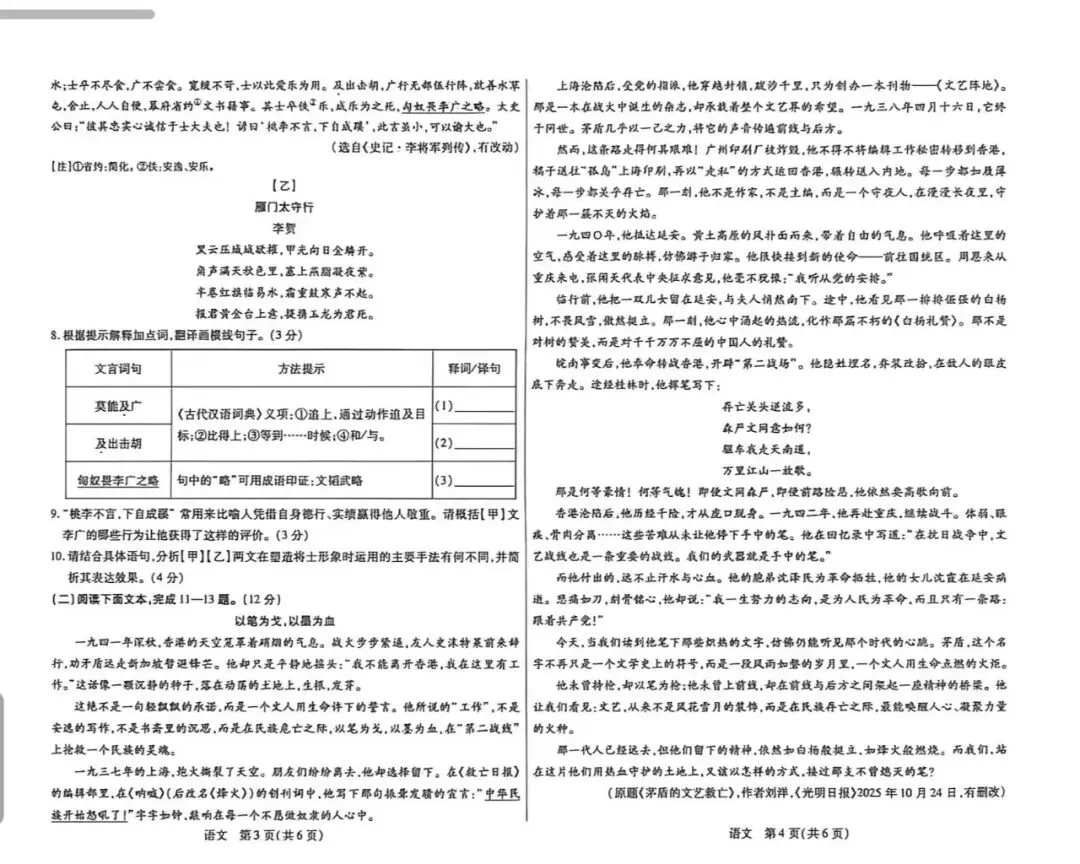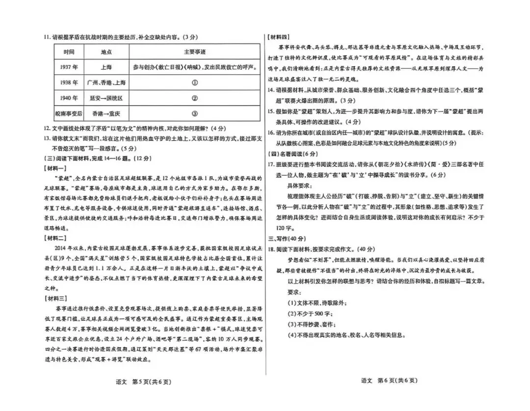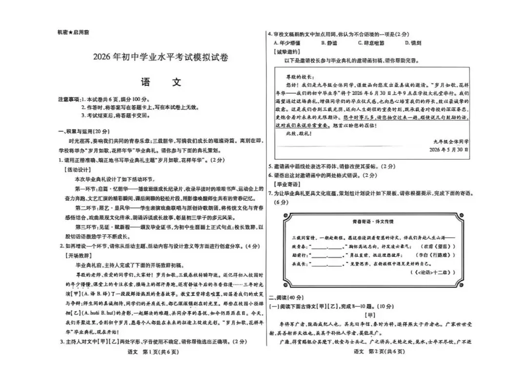 包头市2026中考一模考试试卷【语文】
