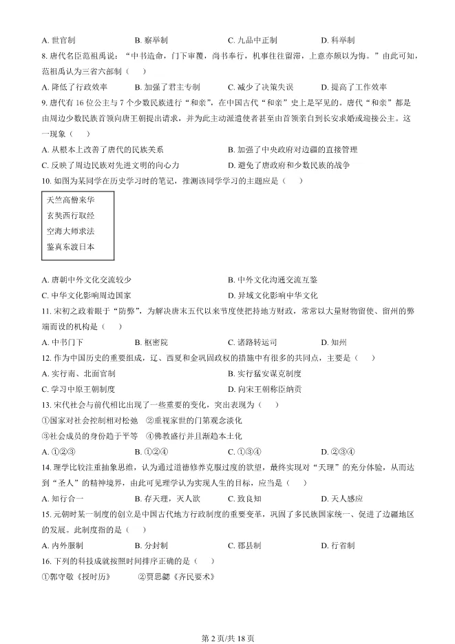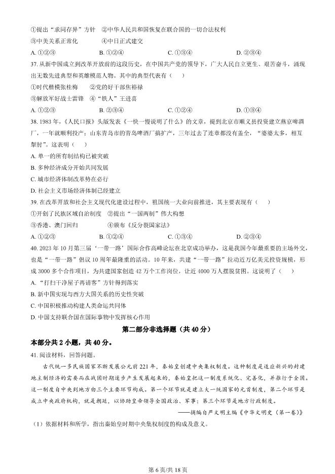 2024北京顺义高一上册期末历史试卷(有答案) 电子版试卷获取,后台回复:试卷