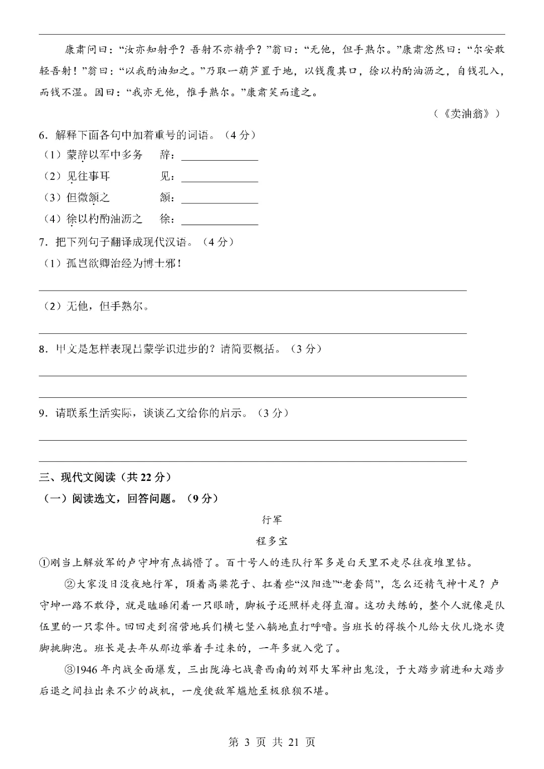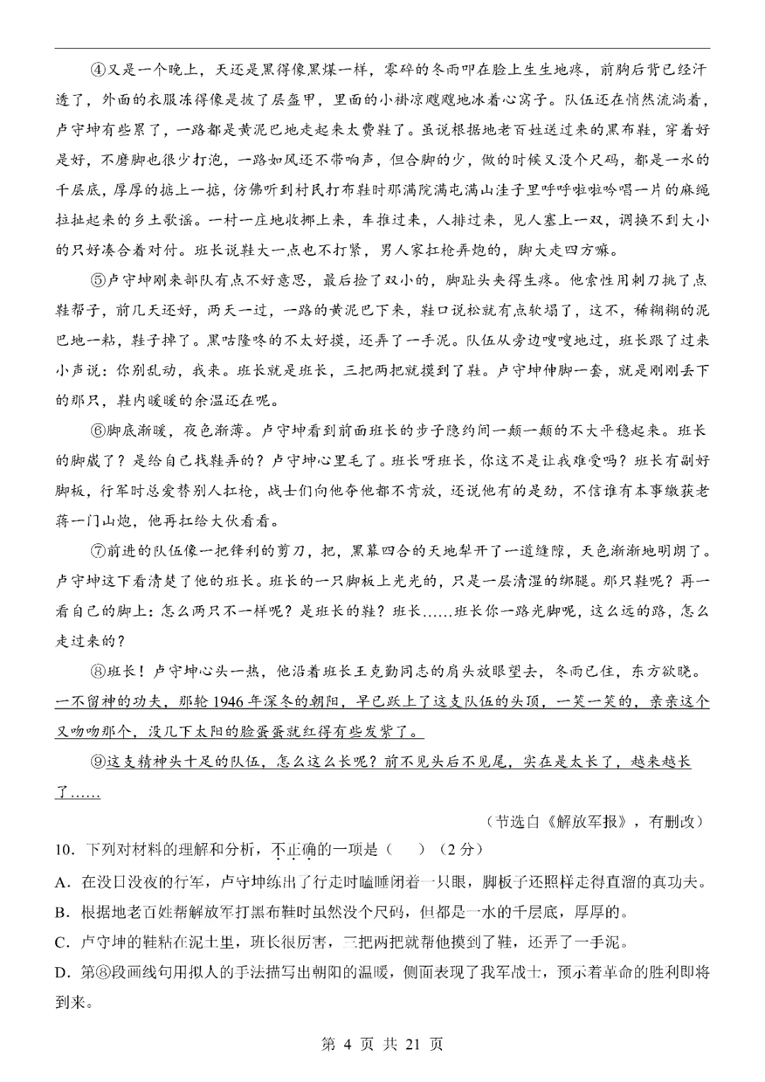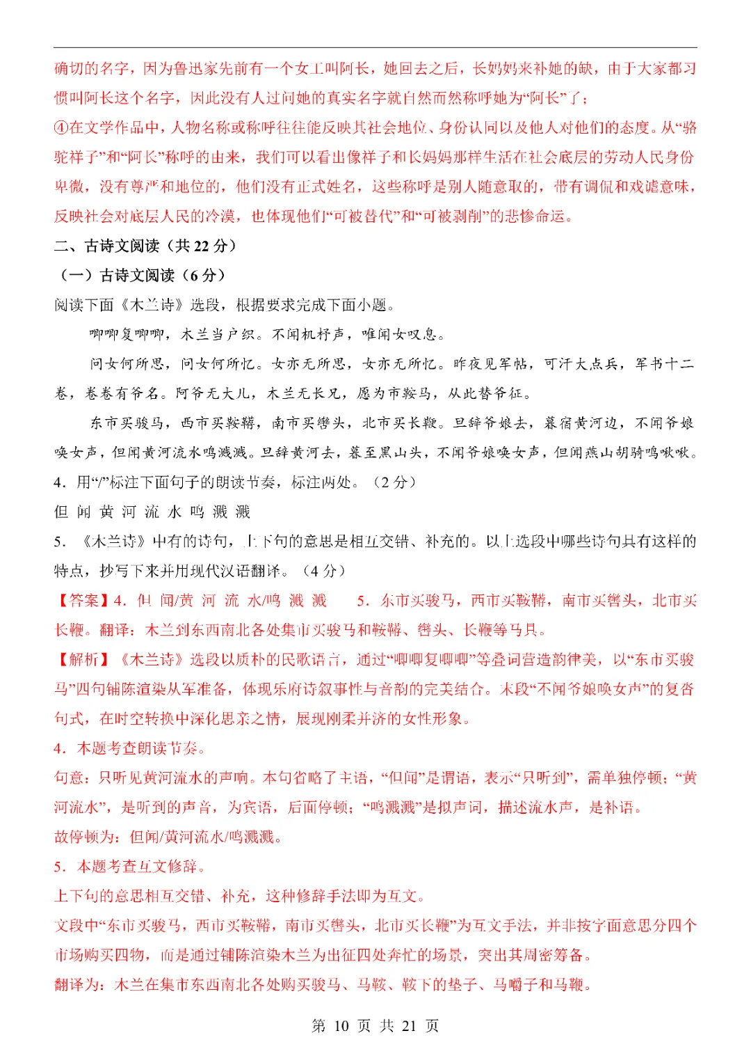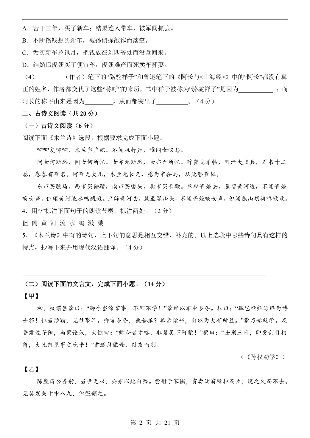 2026新人教七年级下册语文期中模拟试卷(含答案)电子版可打印!