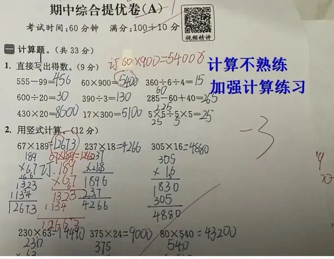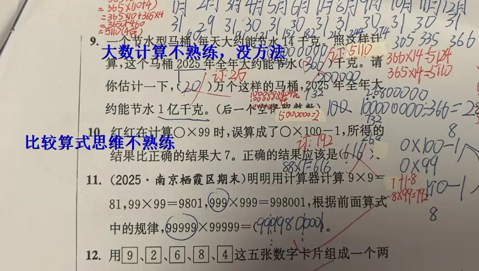 周末四年级孩子测试分析: