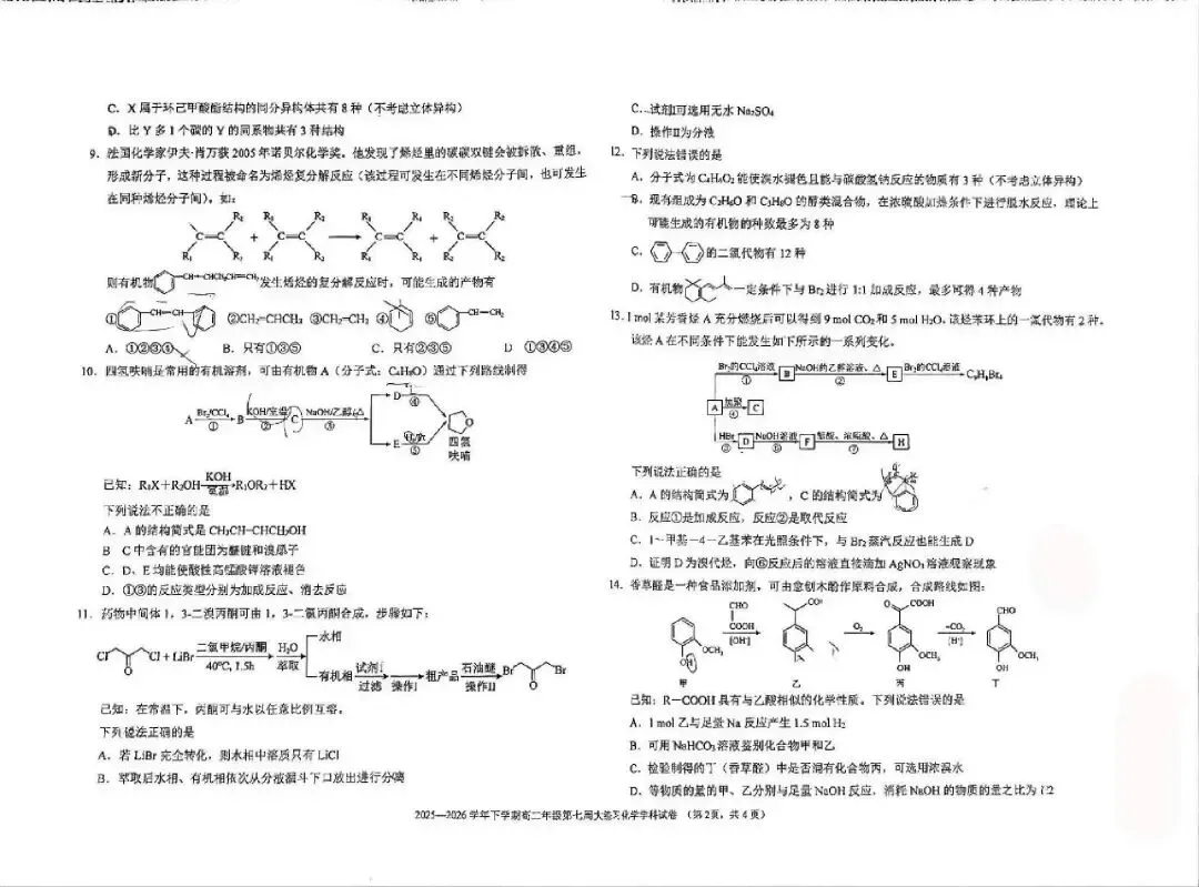 >吉大2026高二下4第一次月考试卷