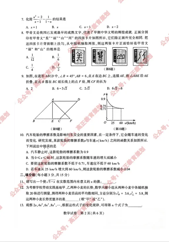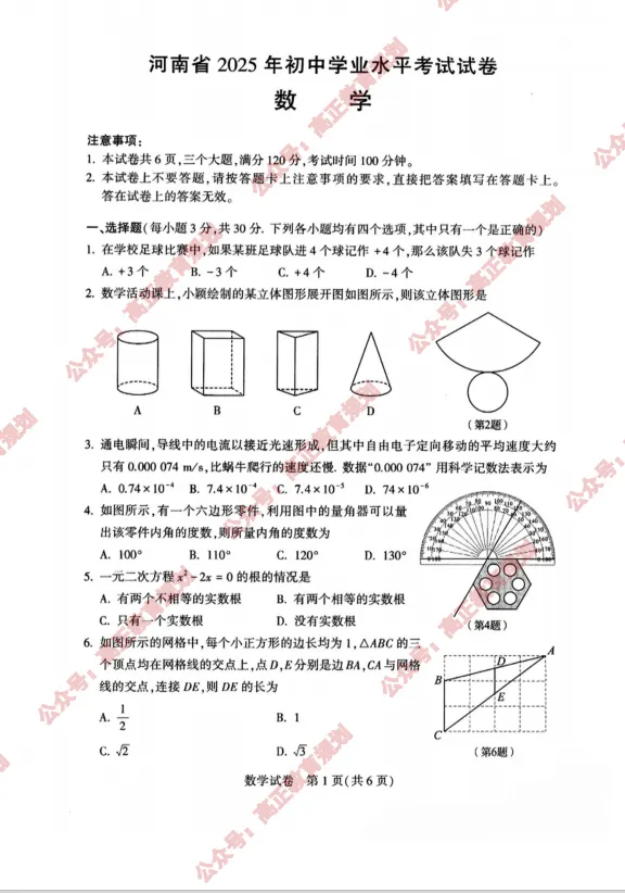 关注公众号并回复【25年中招数学】获取试卷和答案
