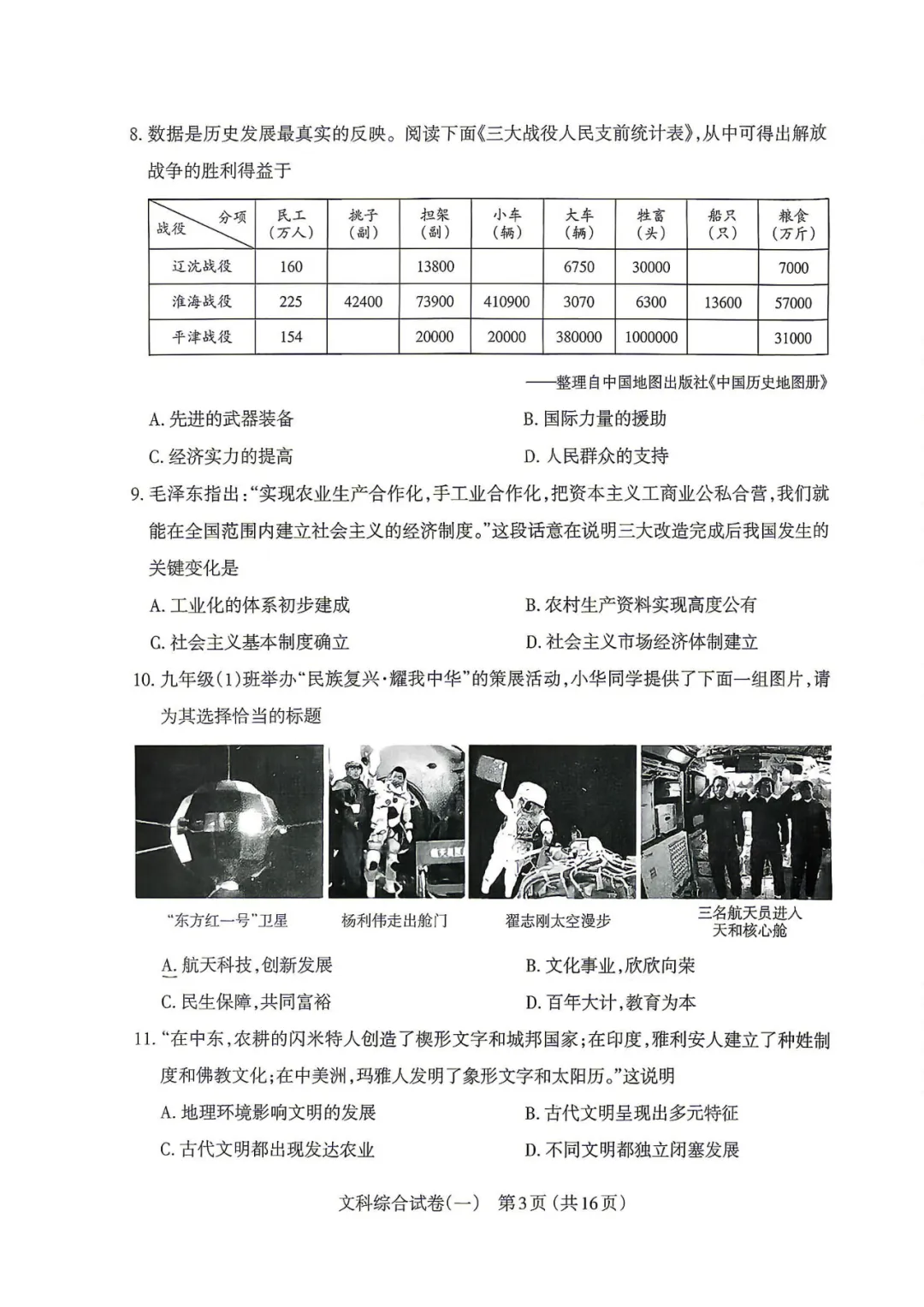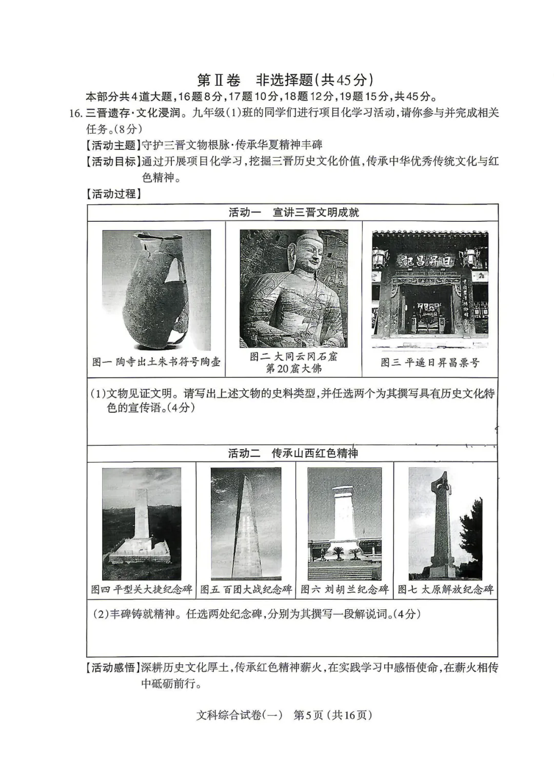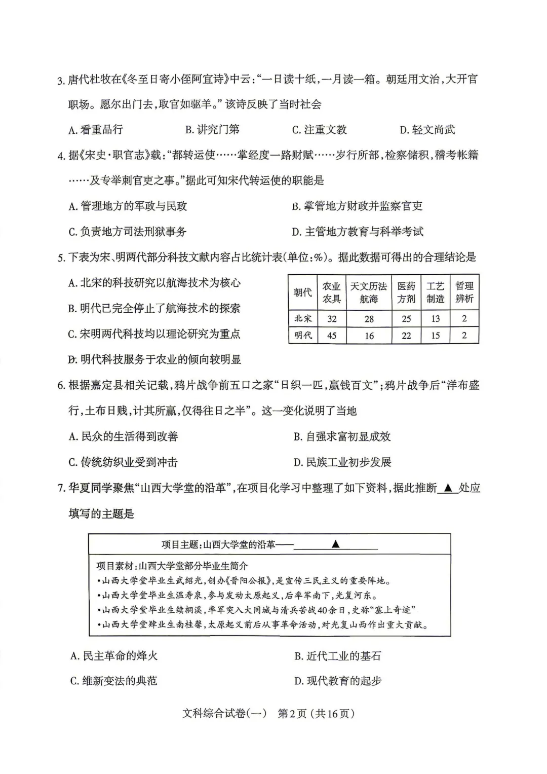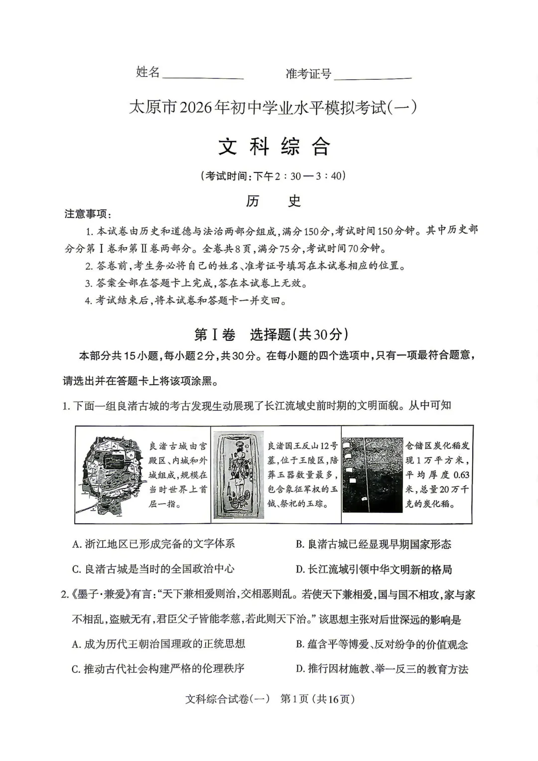 太原市2026年中考一模历史试卷!
