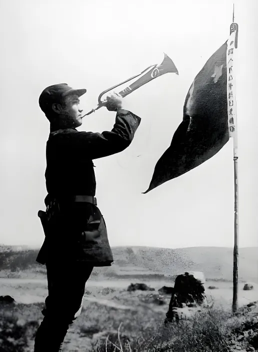 | 而当太阳以轰响的光彩 辉煌了整个天穹的时候, 他以催促的热情 吹出了出发号。 ——艾青《吹号者》 [注]《抗战之声》,1936年8月,斯诺摄于宁夏豫旺县。《吹号者》创作于1939年3月。 |