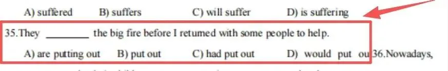 考点解析:考查固定搭配,put的词组,put on穿上 put off推迟 put up搭建 put forward 提出