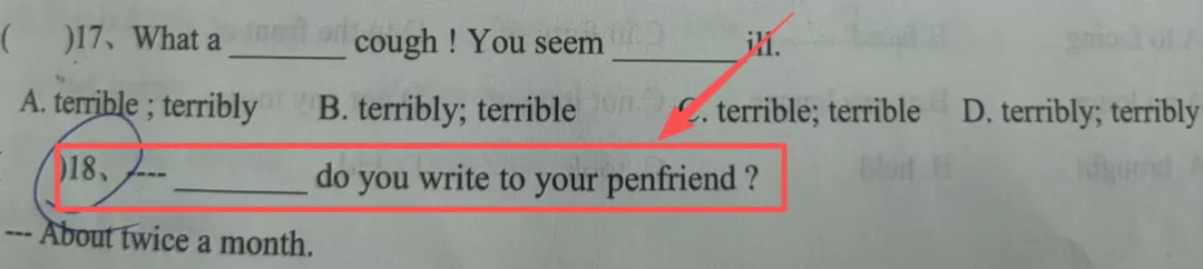 考点解析:考查特殊疑问词的用法,how long 询问时间长短,how often 询问频率。