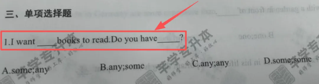 考点解析:考查some 和any 的用法,两者都既可以修饰可数名词,也可以修饰不可数名词,some 用在肯定句,否定句和疑问句用any.
