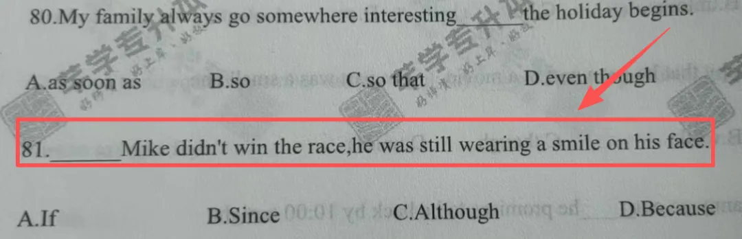 考点解析:考查连词在句中的用法,although表示尽管,即使。