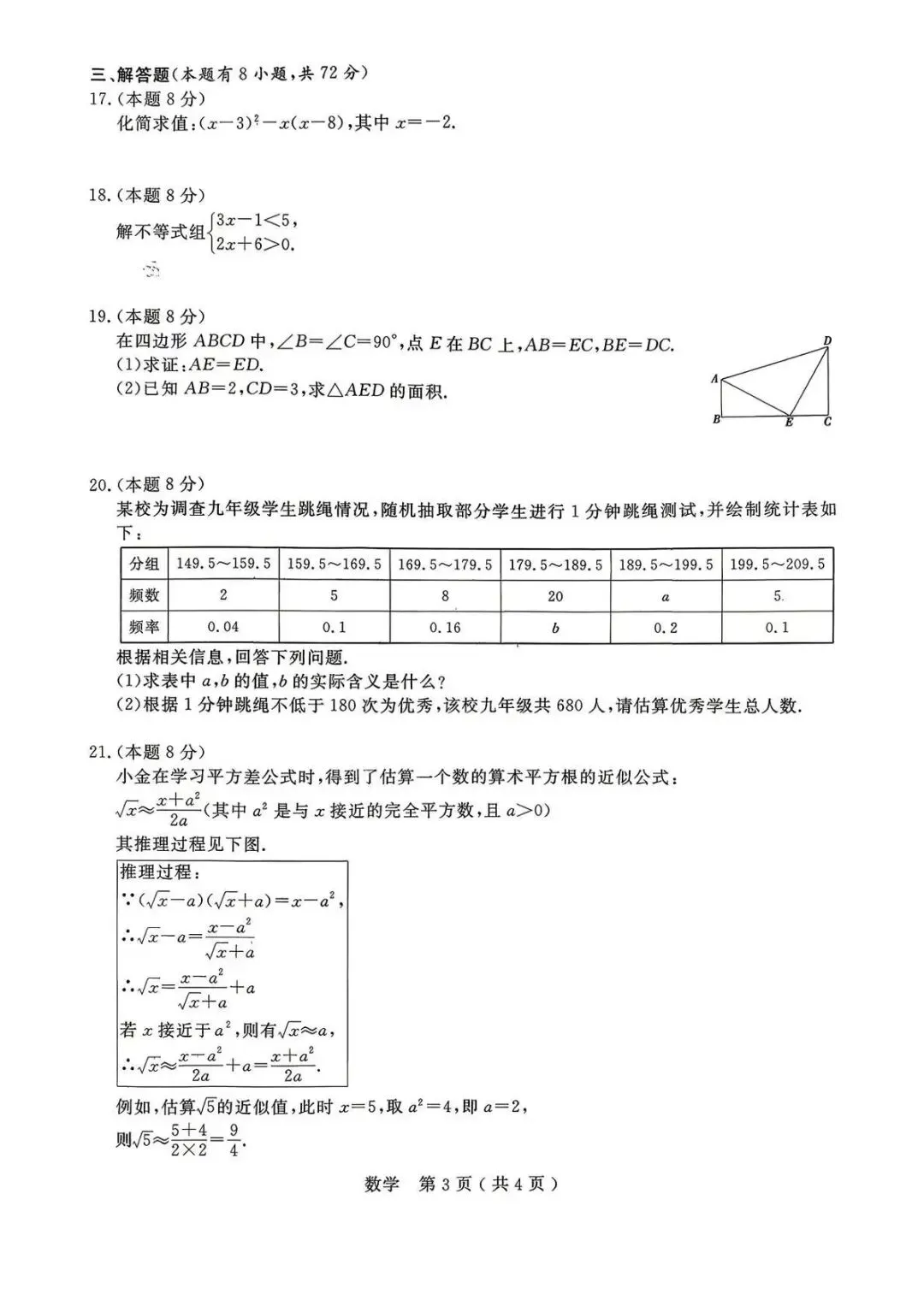 但第3问较往年难度提升较大,没有明显的辅助线思路,而且计算量较大,计算结果也搞人心态,部分学生不敢写......