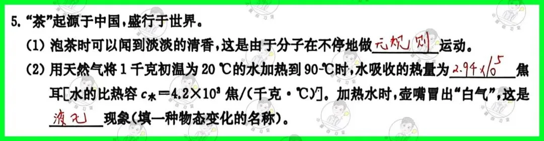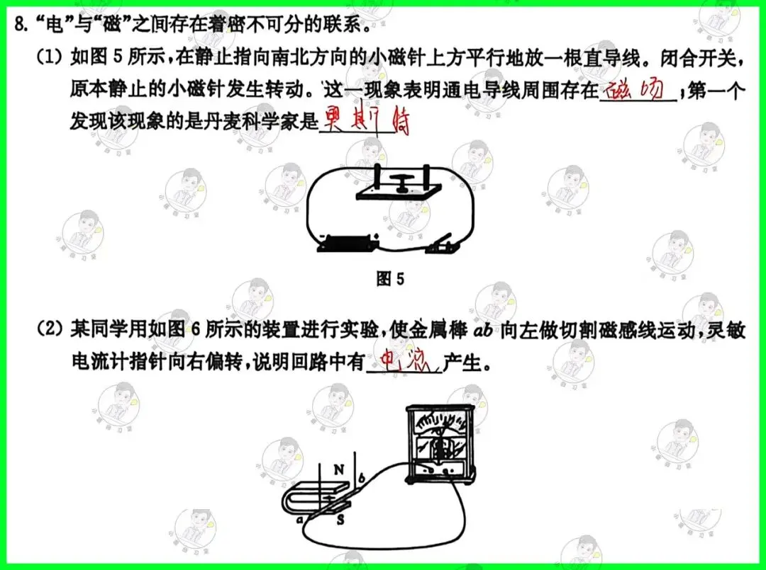 | 第1题:内容基础,注意选项中的字眼,“增加”不要写成“变大”;第2小问中注意直升机斜向上匀速飞行;第4题:力可以改变物体的运动状态(方向和速度);对于流体压强,牢记流速越大,压强越小;第5题:壶嘴的“白气”是烧开的水蒸气流到空气中遇冷液化的结果;第6题:考查杠杆的计算以及杠杆的分类,第1问动力与阻力比为1:2,显然是省力杠杆,所以第2问选择省力杠杆即可;第7题:第2问电路的判断,理解各个开关对应的用电器,S1闭合吹冷风,S1、S2都闭合吹热风,只有D选项符号;第8题:第1小问由图可知是“电流的磁效应”,奥斯特发现该相信;第2小问切割磁感线运动是发电机的原理;第9题:压强浮力的基础计算;下潜过程中,深度变大,压强不断变大;“漂浮到浸没”,整个过程中分2个阶段理解,阶段1,浸没前,V排不断变大,则浮力不断变大;阶段2,浸没后,V排不变,则浮力不变;第10题:考查凸透镜成像规律,光源和光屏需在凸透镜的两侧;三者中心必须同一高度(目的是使像成在光屏中央),注意千万不要写同一直线;光屏上呈清晰放大的实像,则此时光源在1倍焦距和2倍焦距之间,光屏在2倍焦距以外(成像规律牢记);第2问中所成像缺失,只能是物体本身缺失;若凸透镜缺失一角,则所成像依旧完整,只是亮度较暗;第11题:第1问探究“电流与电阻的关系”则应该控制电压表示数不变;所以滑动变阻器的作用就是确保定值电阻在不断更换的情况下,使得电压表示数不变;第2问电路故障,注意条件“移动滑片p,电流表示数不变,两电表至少有一个示数不为0”,串联,直接列表格;第12题:s-t图形的计算,注意分类讨论:情况一:小华小红家在博物馆的两侧;情况二:小华小红家在博物馆的同侧;第14题:机械功和功率的计算,着重理解动滑轮特点:省一半力、费2倍的距离;第15题:第1小问的规律总结很容易忽略第2个点,需仔细观察数据;第3小问的计算需要注意,求最高温度,则热敏电阻阻值最小,此时串联电路的电流最大,只需要讨论电流表示数为100mA时的情况即可; |