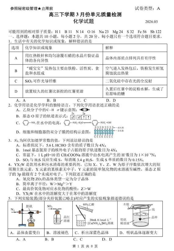 【高三试卷】山东省日照市第一中学2025-2026学年高三下学期3月份单元质量检测(全科)