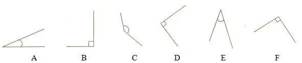 7、下列各角中,( )是直角,( )是锐角,( )是钝角。
