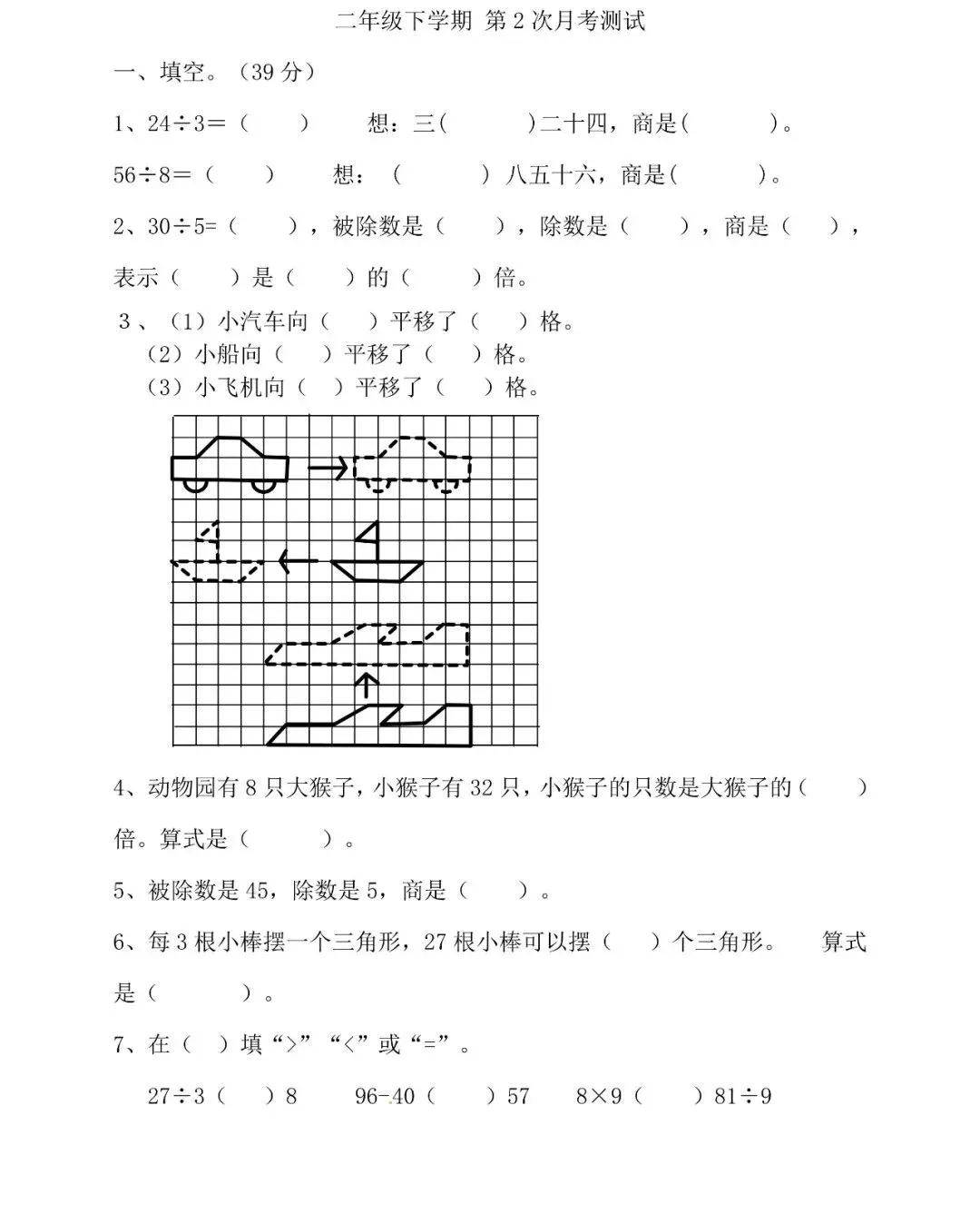 三、想一想,填一填。(1、7题各3分,其余每空1分,共36分)