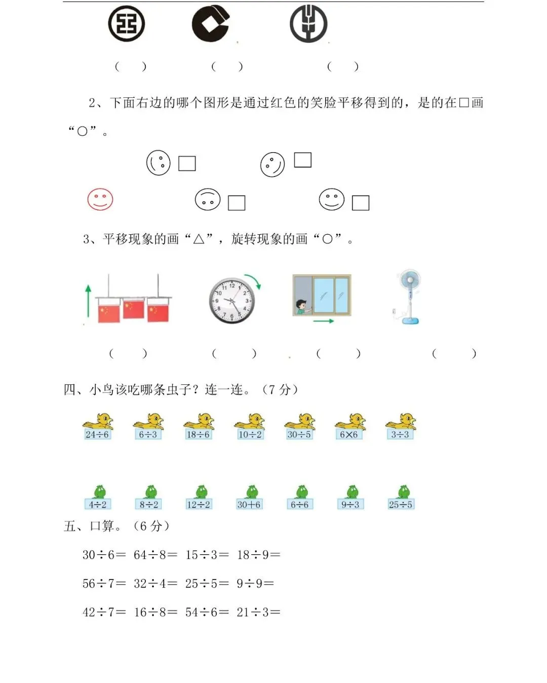24÷( )=6 ( )×7=35 64÷( )=8