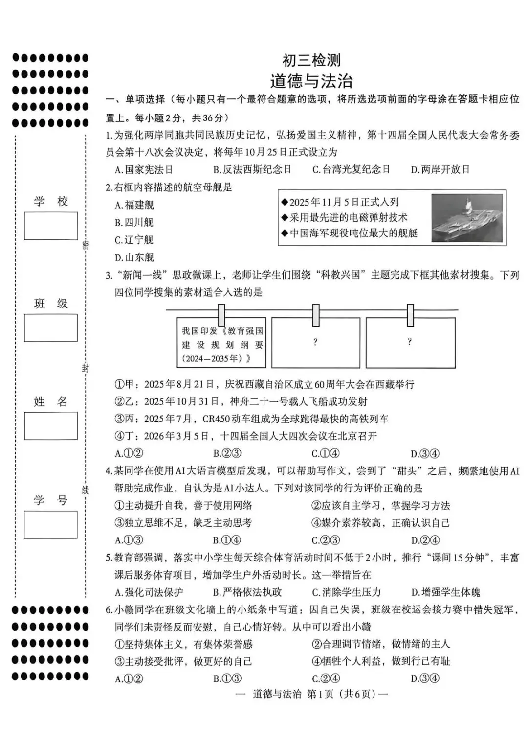 发消息“2026南昌一模”到本微信公众号