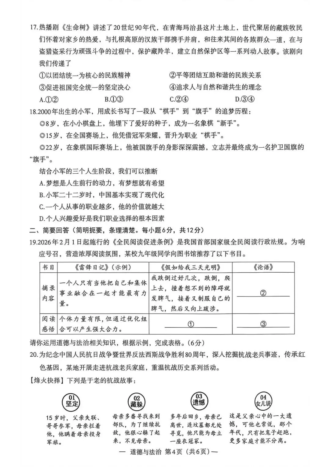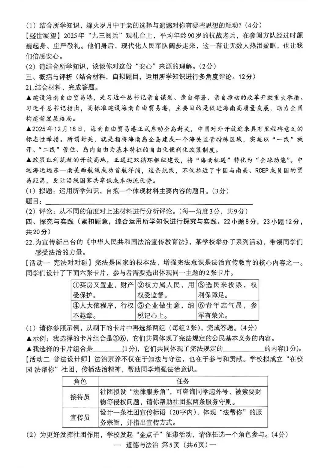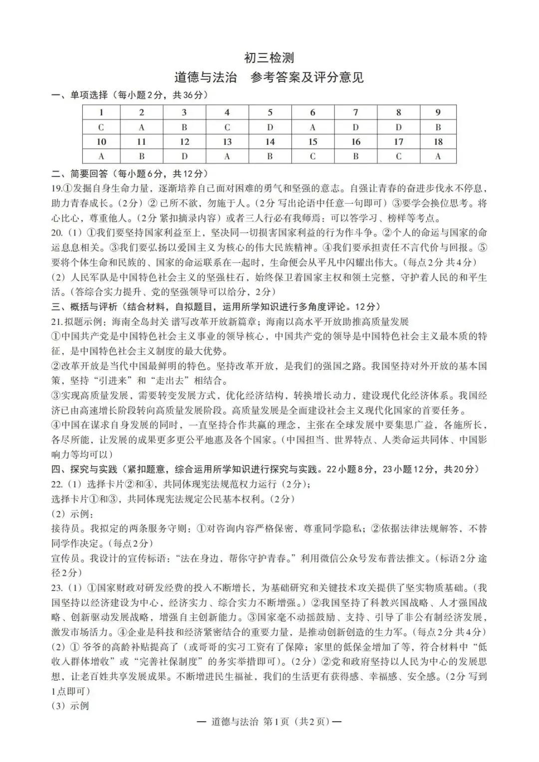 中考道德与法治概括与评析资料