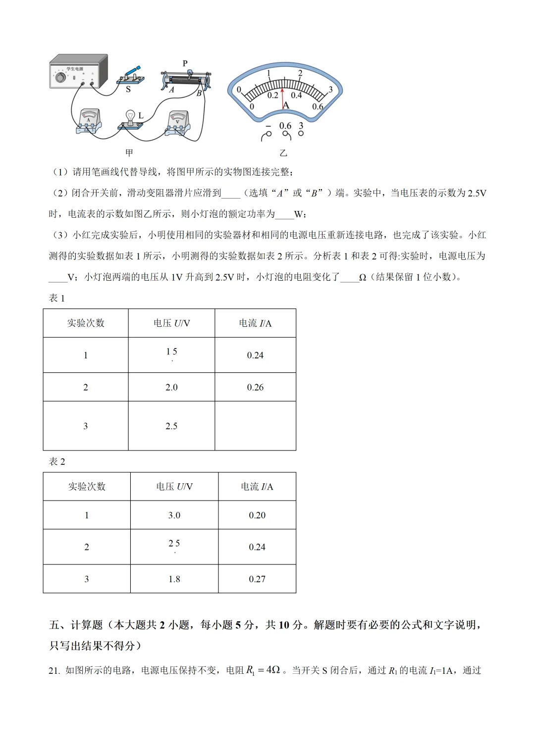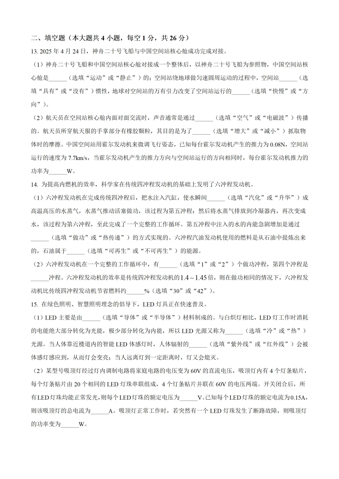 2026【初三二模】嘉定区,物理试卷附参考答案.
