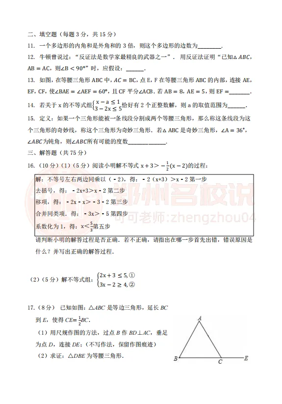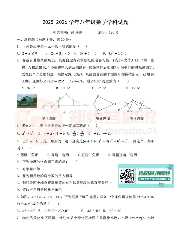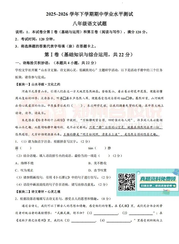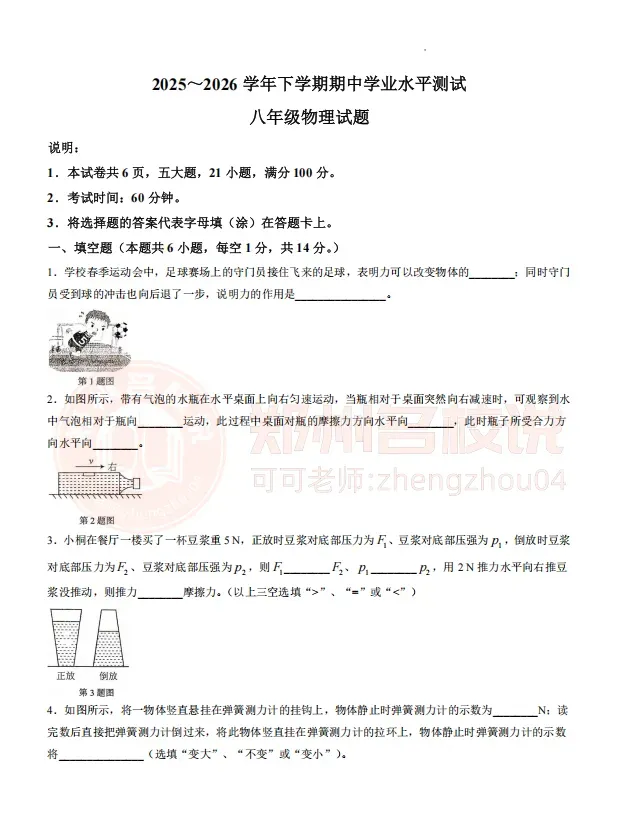 >最新!郑州八年级下学期期中考试真题出炉!持续更新中!