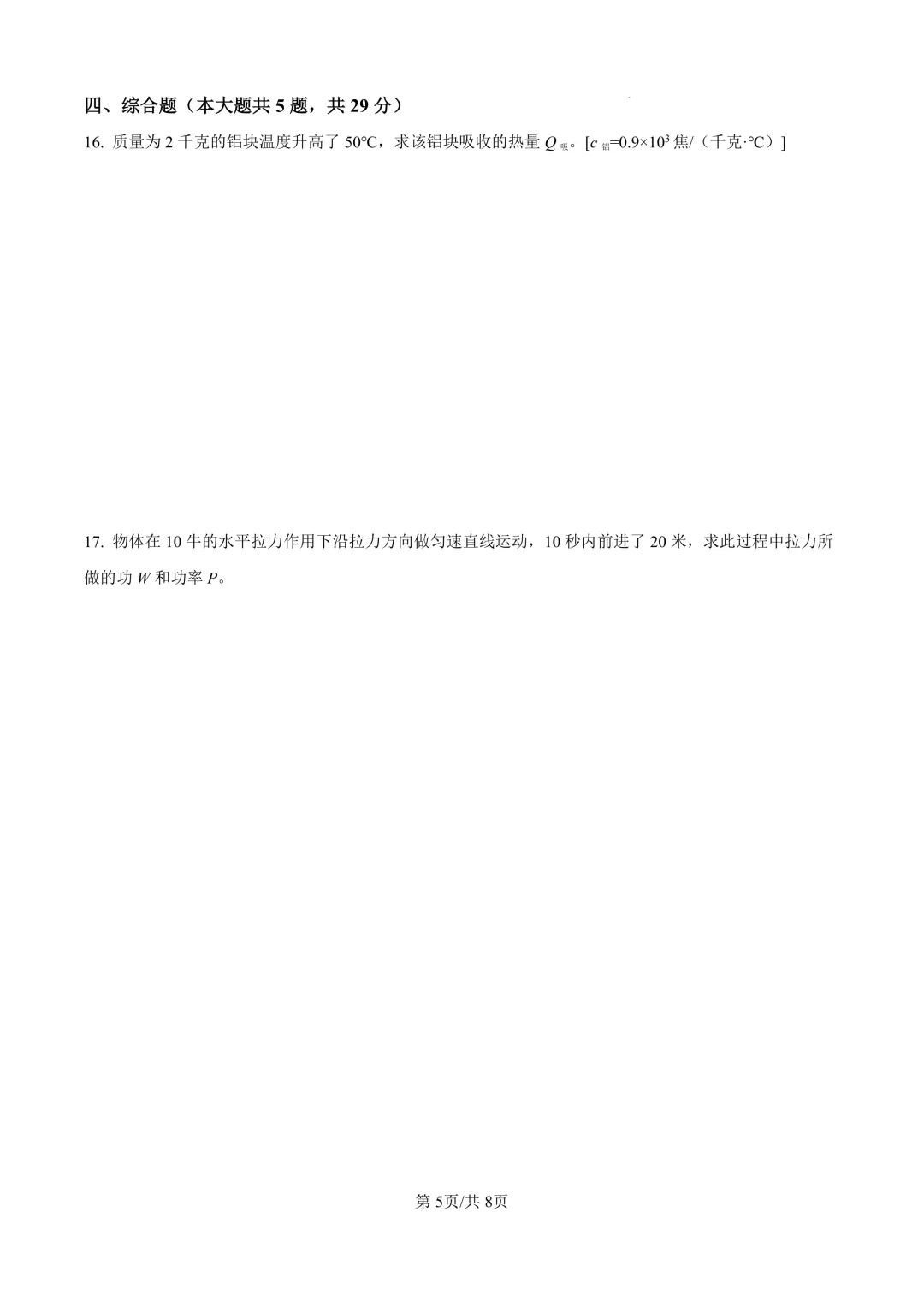 2025届上海市静安区初三二模物理试卷(原卷版+解析版)