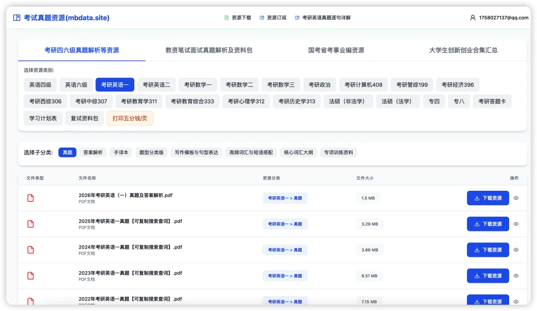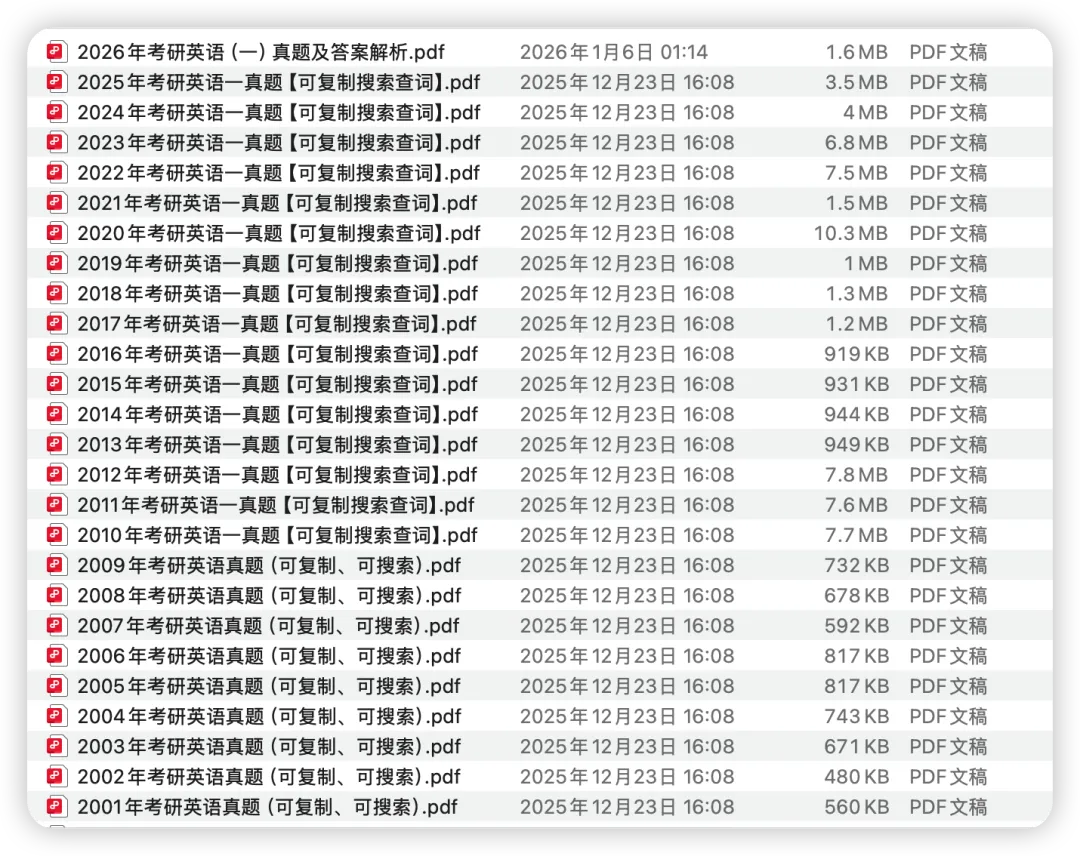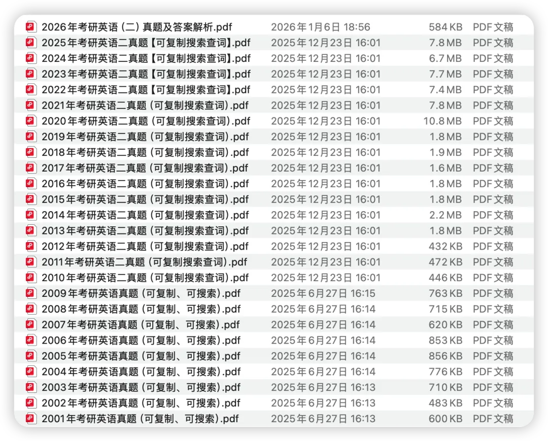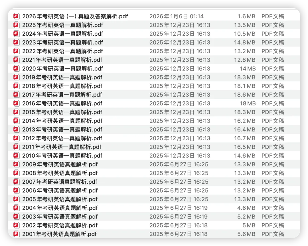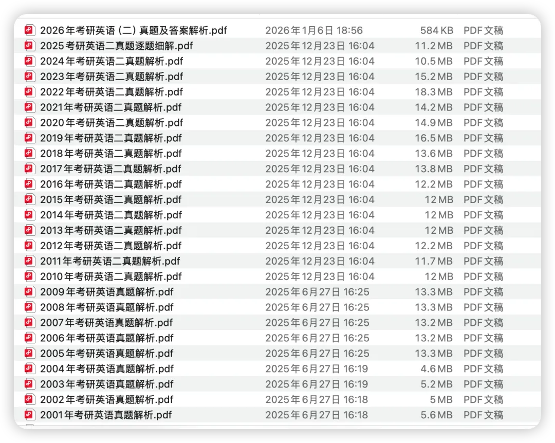 整理汇总了考研英语一/二(2000–2026)年历年真题及解析PDF合集👉直接访问我的网站下载: