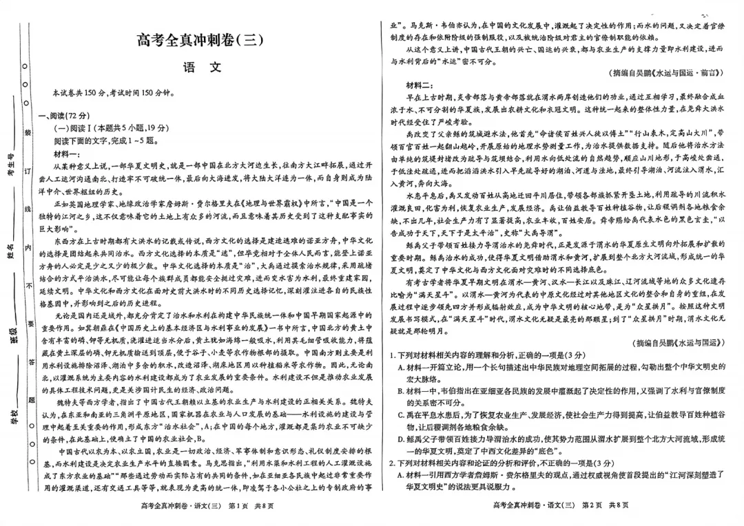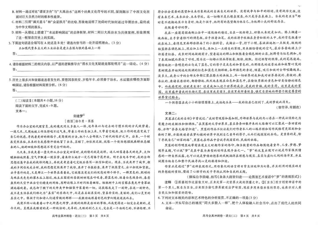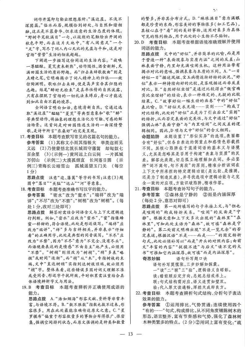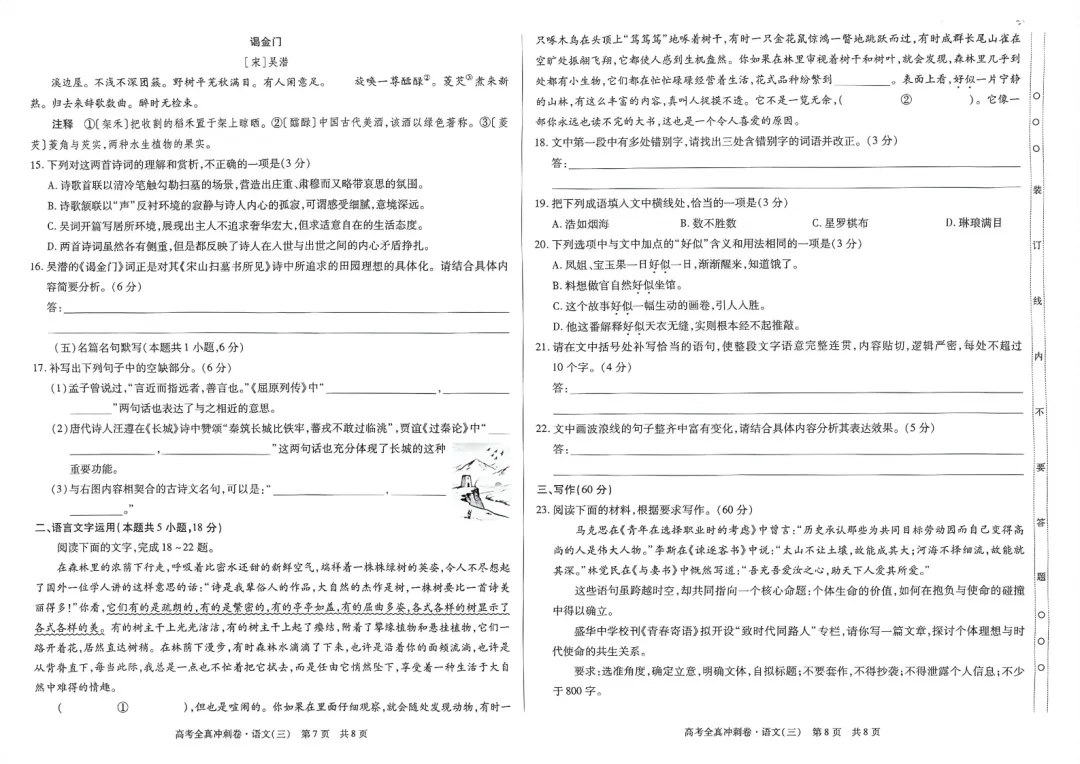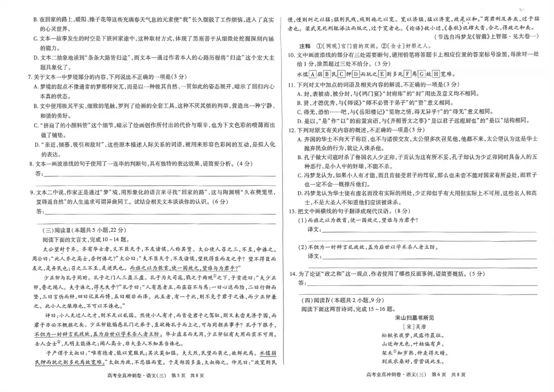 【三份好题】高中语文试题快题(试卷+答题卡+讲评课件+答案解析)