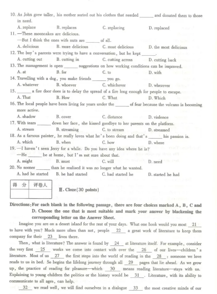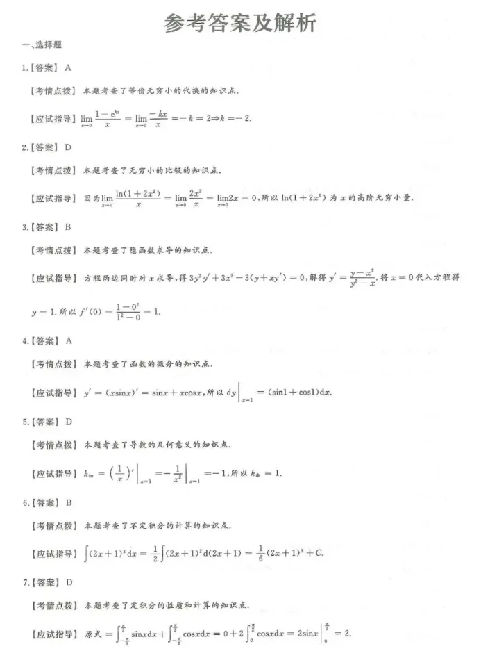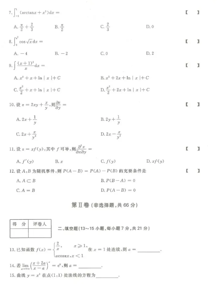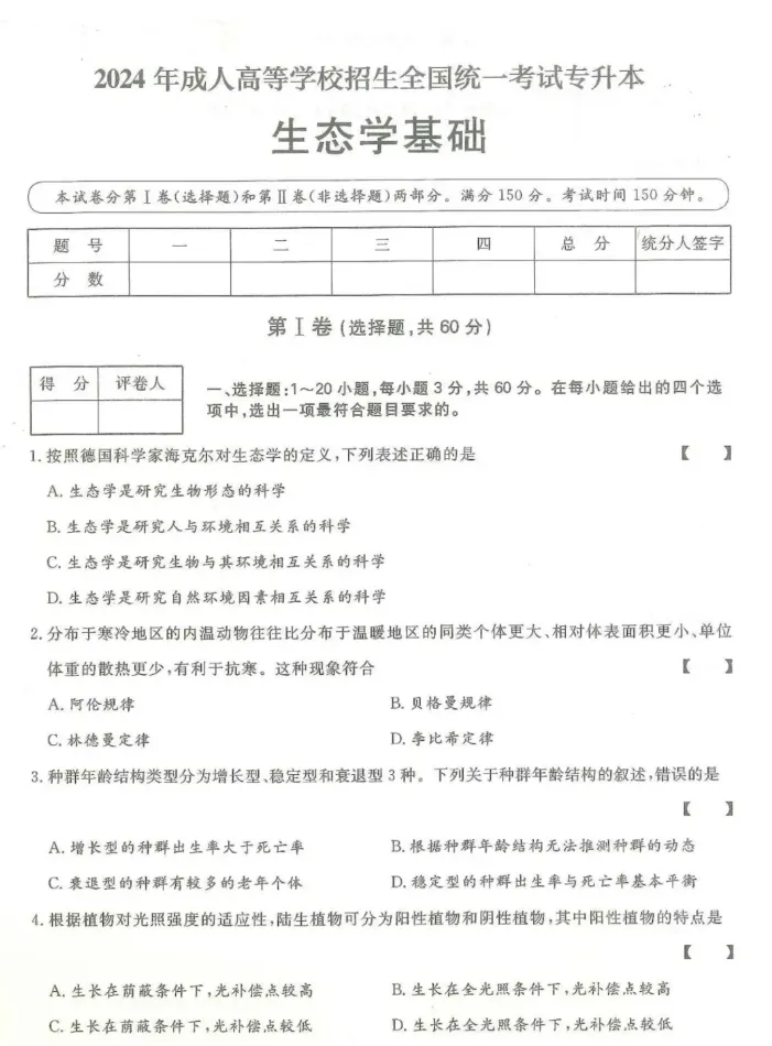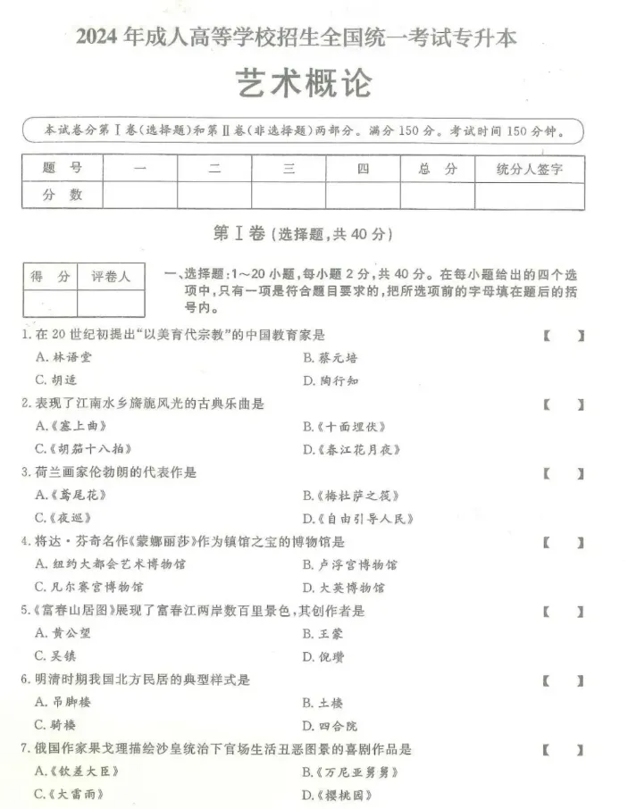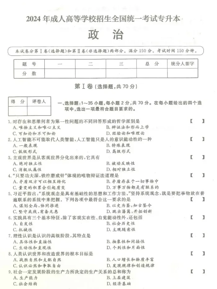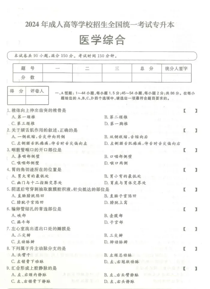 >2024年成人高考(专升本)入学考试真题试卷+答案解析!