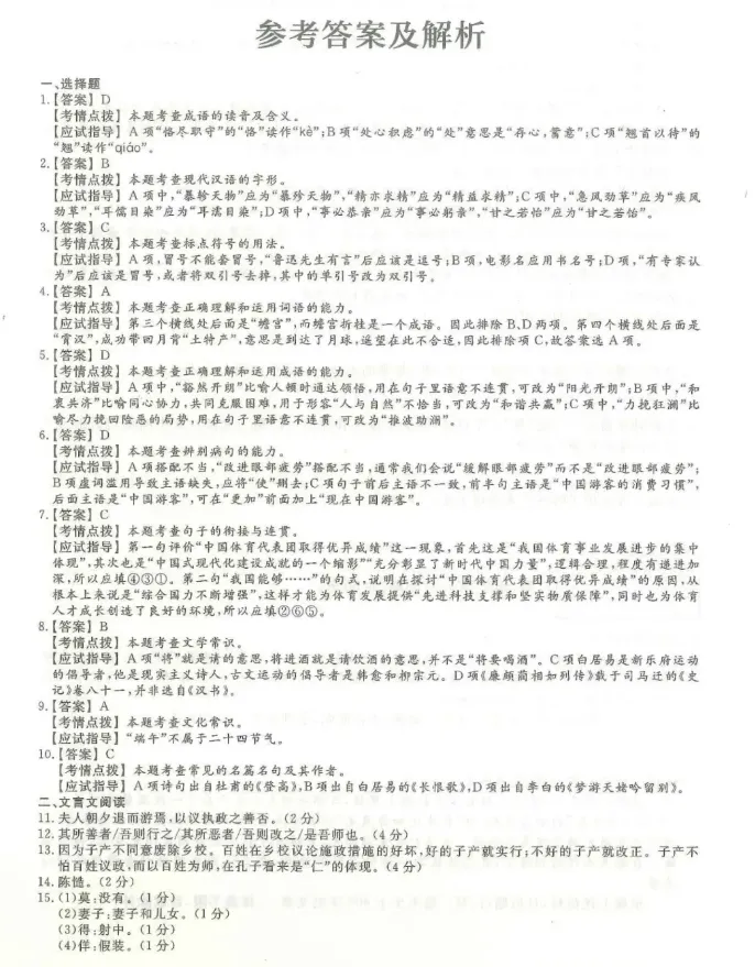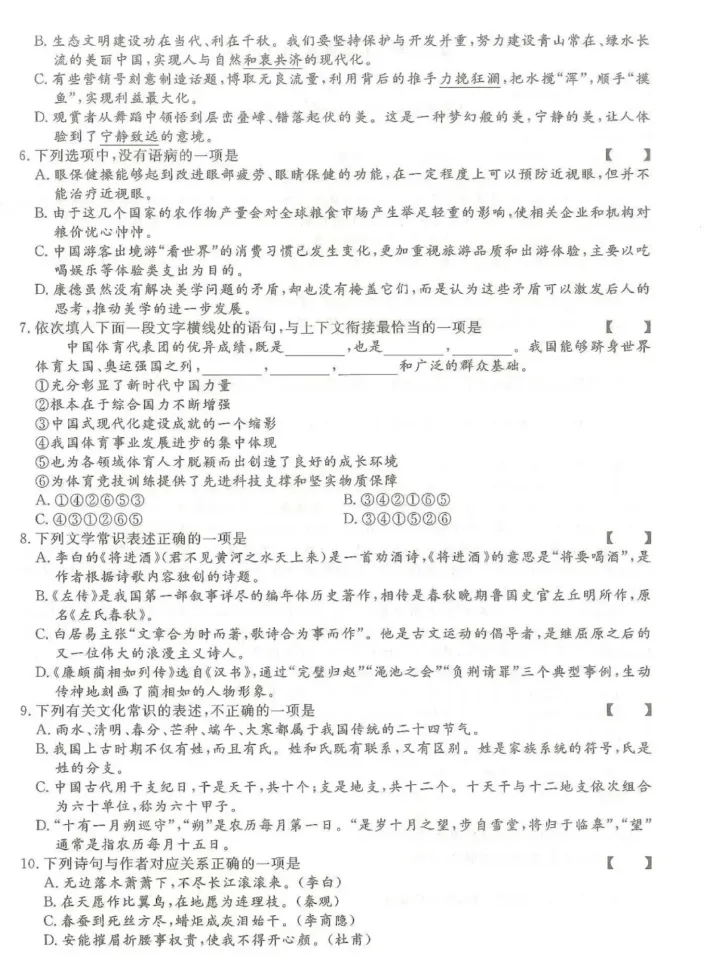 【期中试卷】六下语文高频考题提升卷