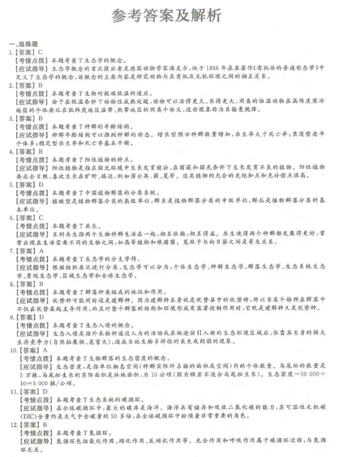 2026年初中生物会考模拟试卷(卷末附答案)