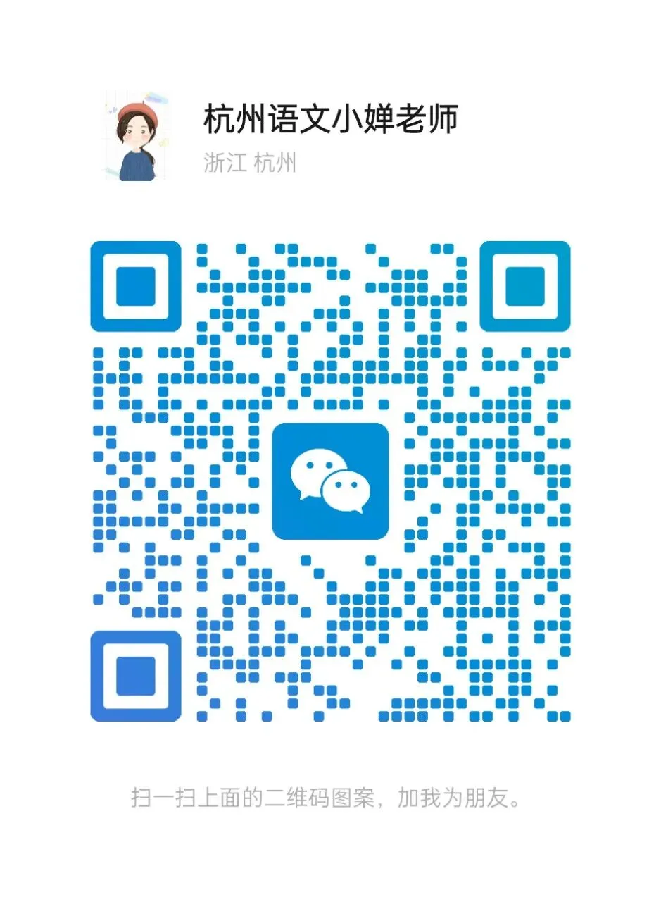 ↑关注我,领取《杭州语文小婵老师公众号经验精华》,每天分享一个语文学习干货,总有一个你能用上。