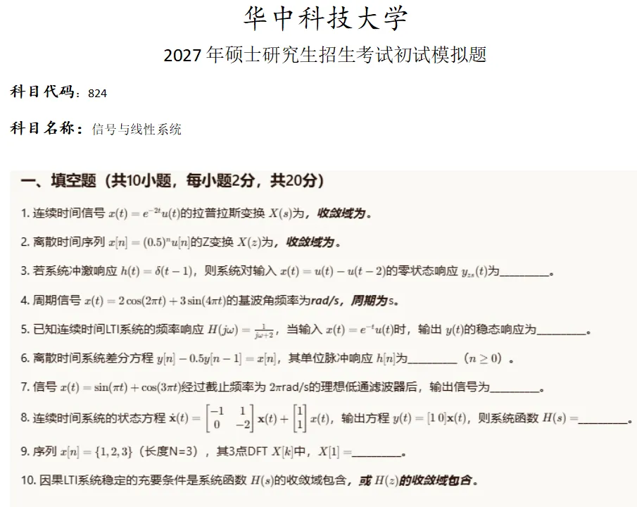 当前位置:首页>考研真题>华中科技大学824信号与线性系统考研真题模拟